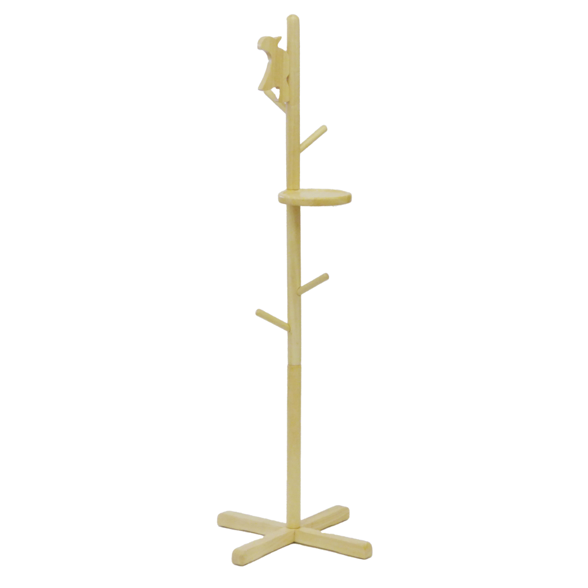 温もりのある天然木ポールハンガーにかわいいキツツキモチーフをプラス。シンプルなデザインに遊び心を加え、お部屋のアクセントになります。