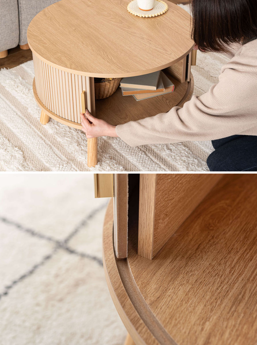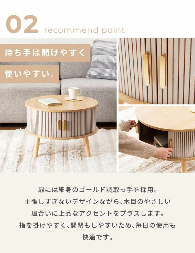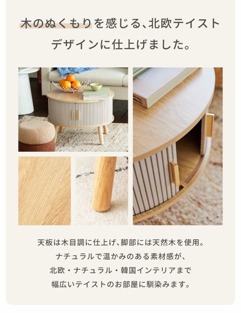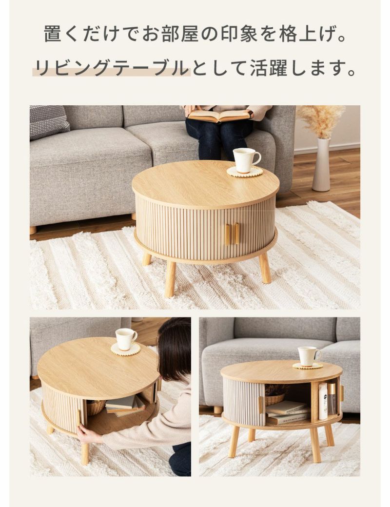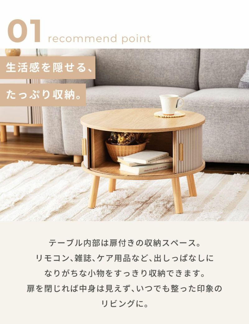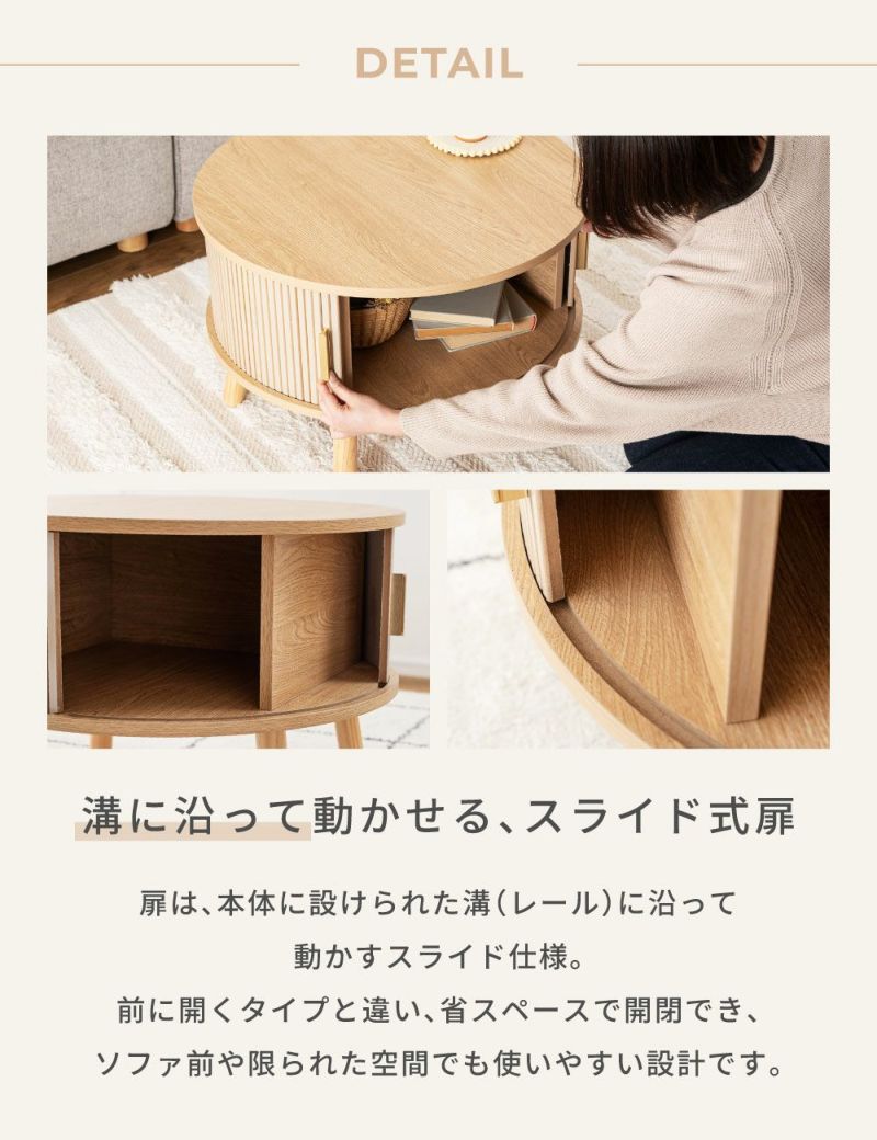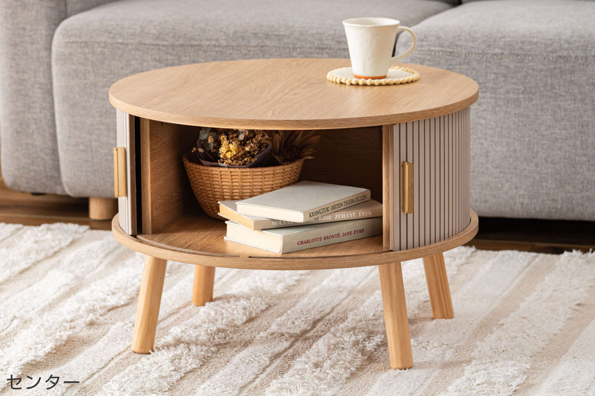 お部屋をスッキリ見せられる、収納付きリビングテーブルです。表情豊かなリブデザインの扉が、生活感の出やすい小物をおしゃれに隠します。