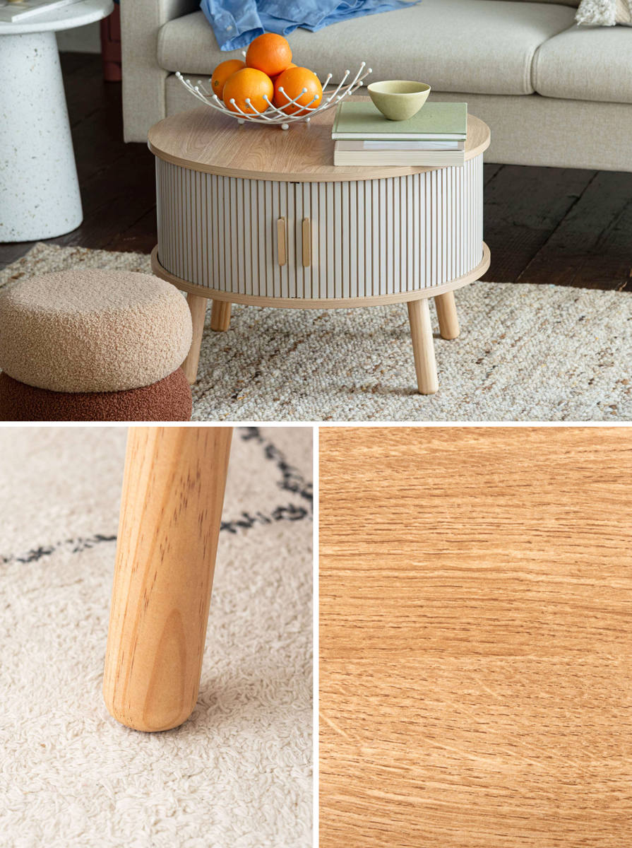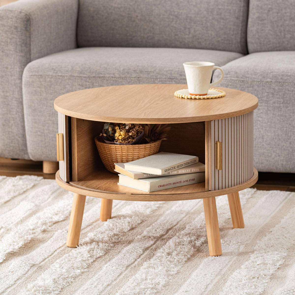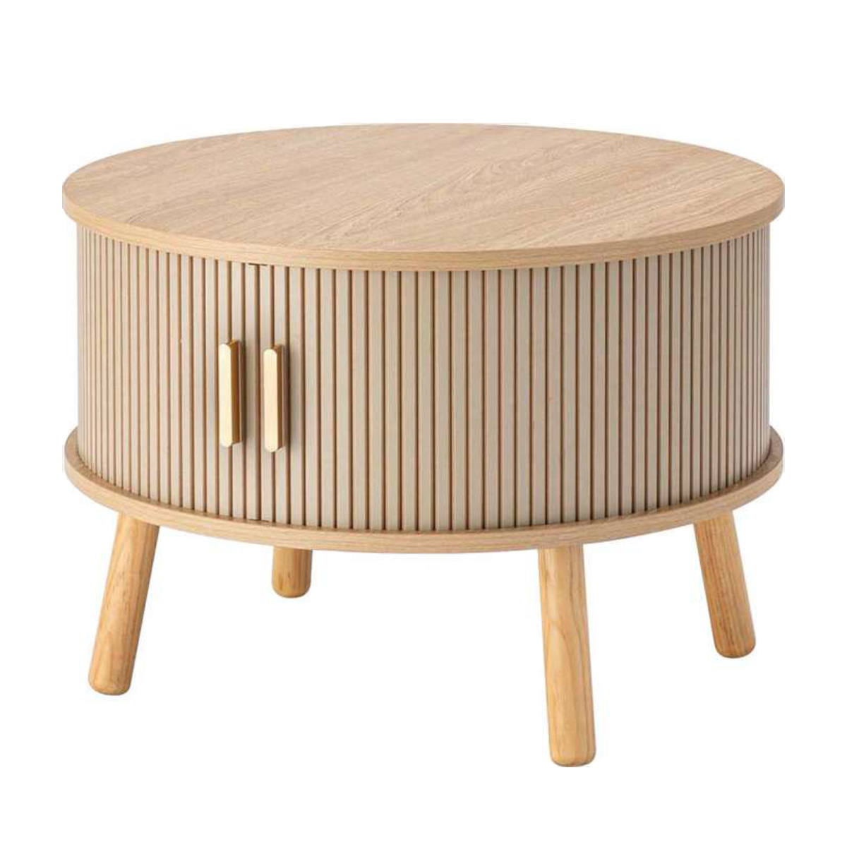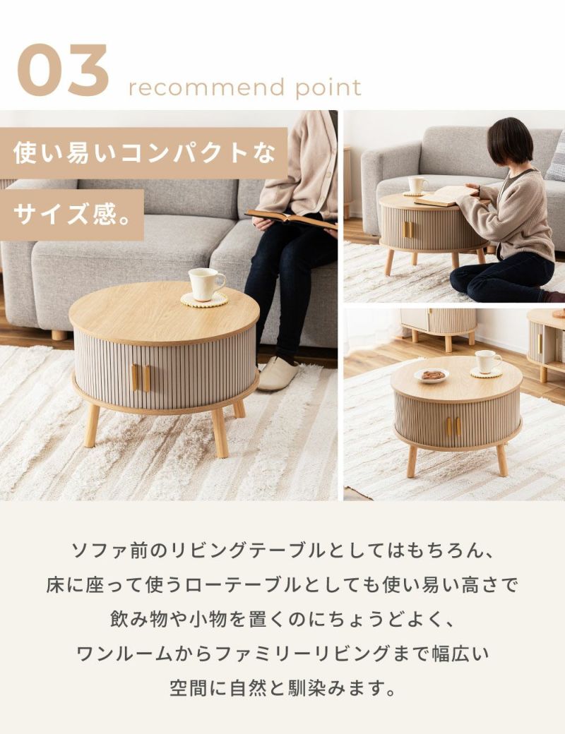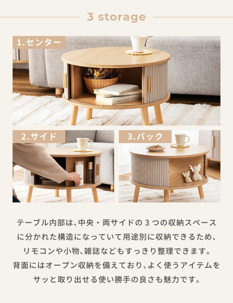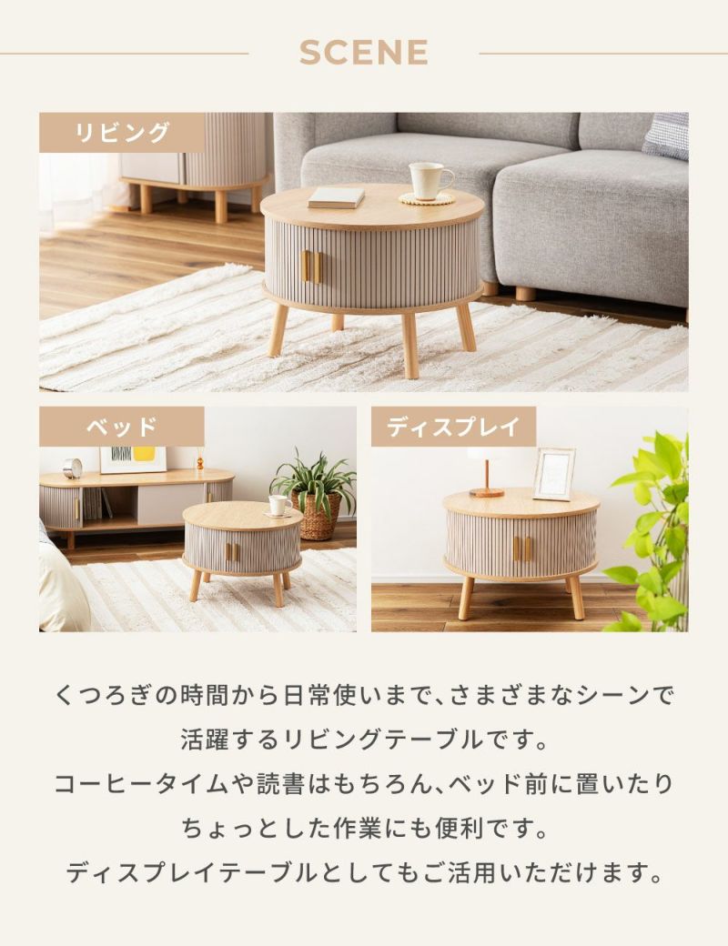 お部屋をスッキリ見せられる、収納付きリビングテーブルです。表情豊かなリブデザインの扉が、生活感の出やすい小物をおしゃれに隠します。