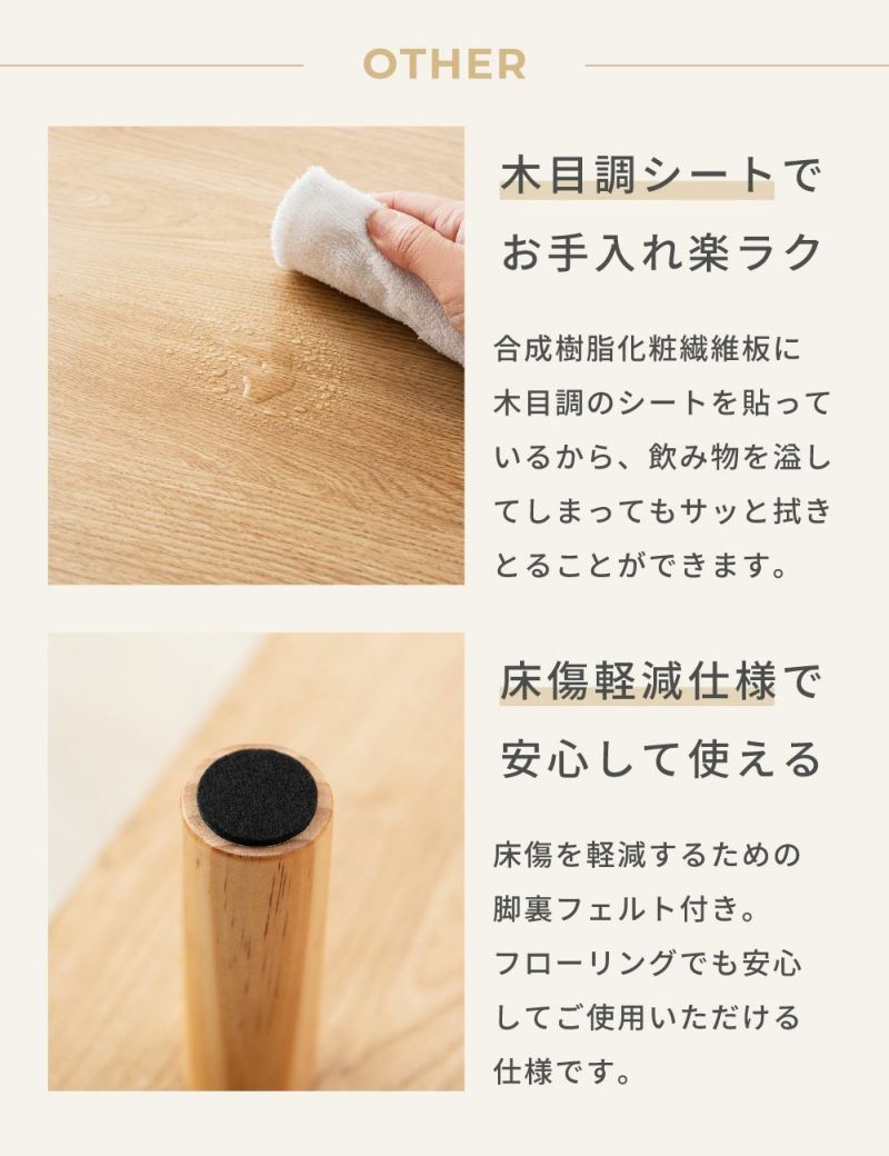 合成樹脂化粧繊維板に木目調のシートを貼っているため、飲み物をこぼしてしまってもサッと拭き取ることができます。
