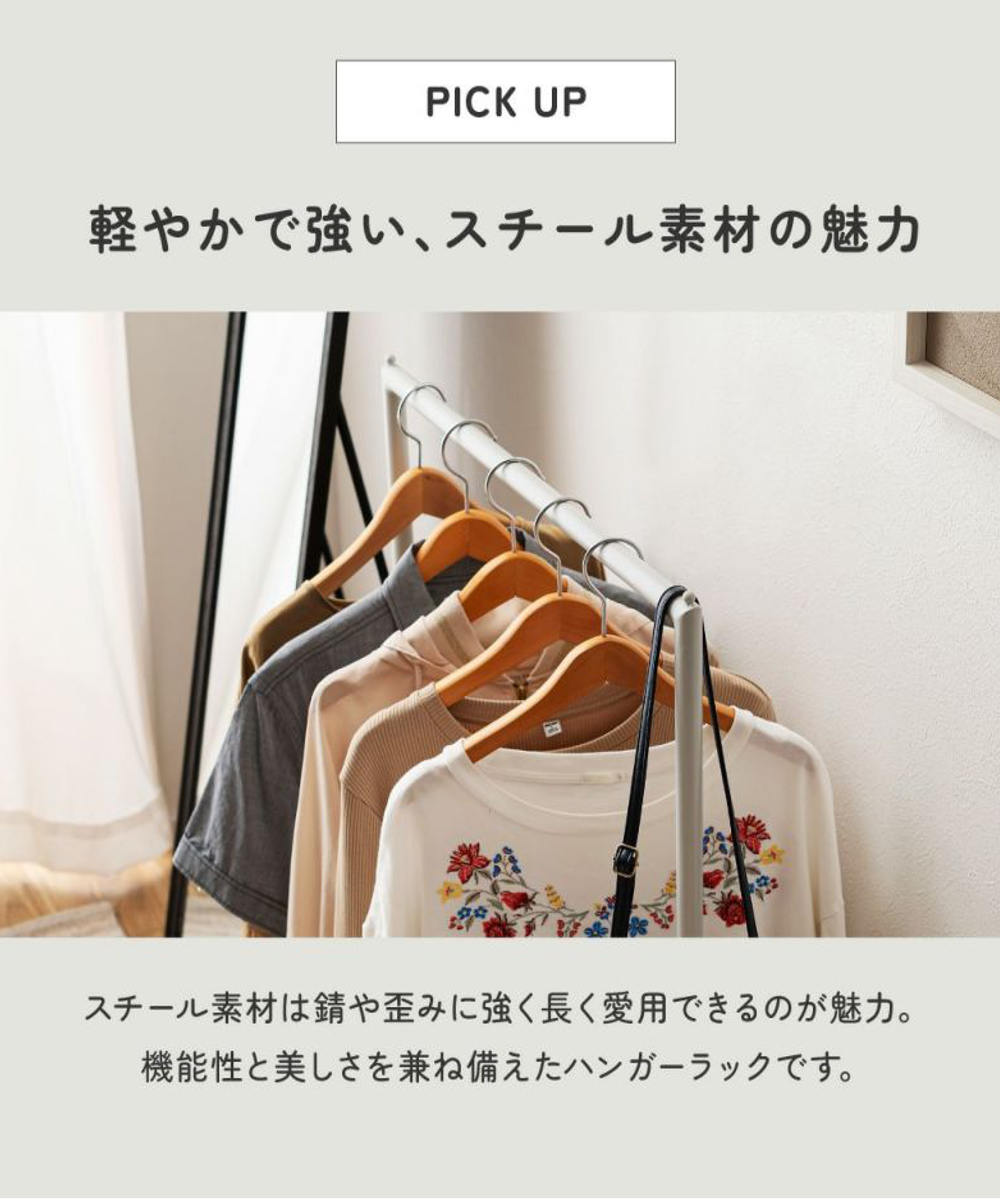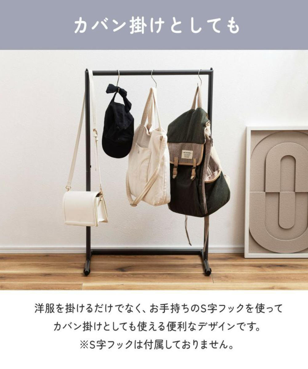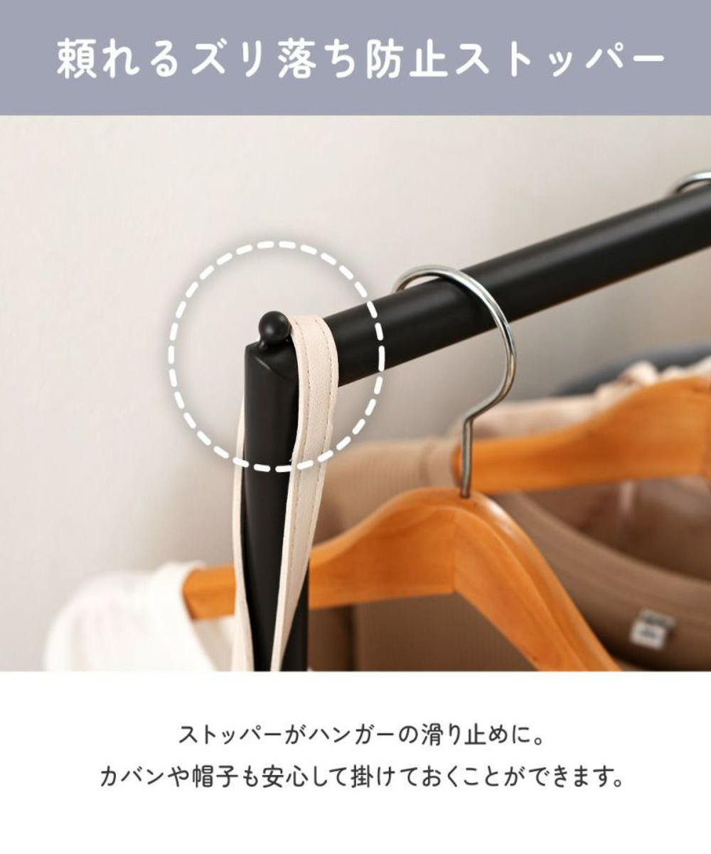 ハンガーはもちろん、バッグや帽子も安心して掛けられる設計です。