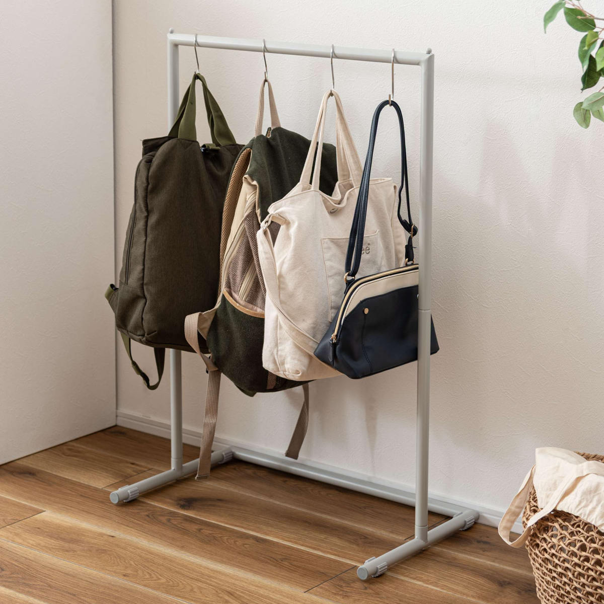S字フックを使えば、リュックやバッグ、帽子などもまとめて収納可能。 毎日使うアイテムを取り出しやすく、身支度もスムーズになります。