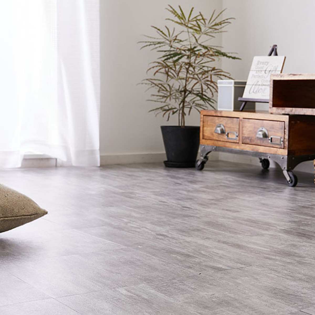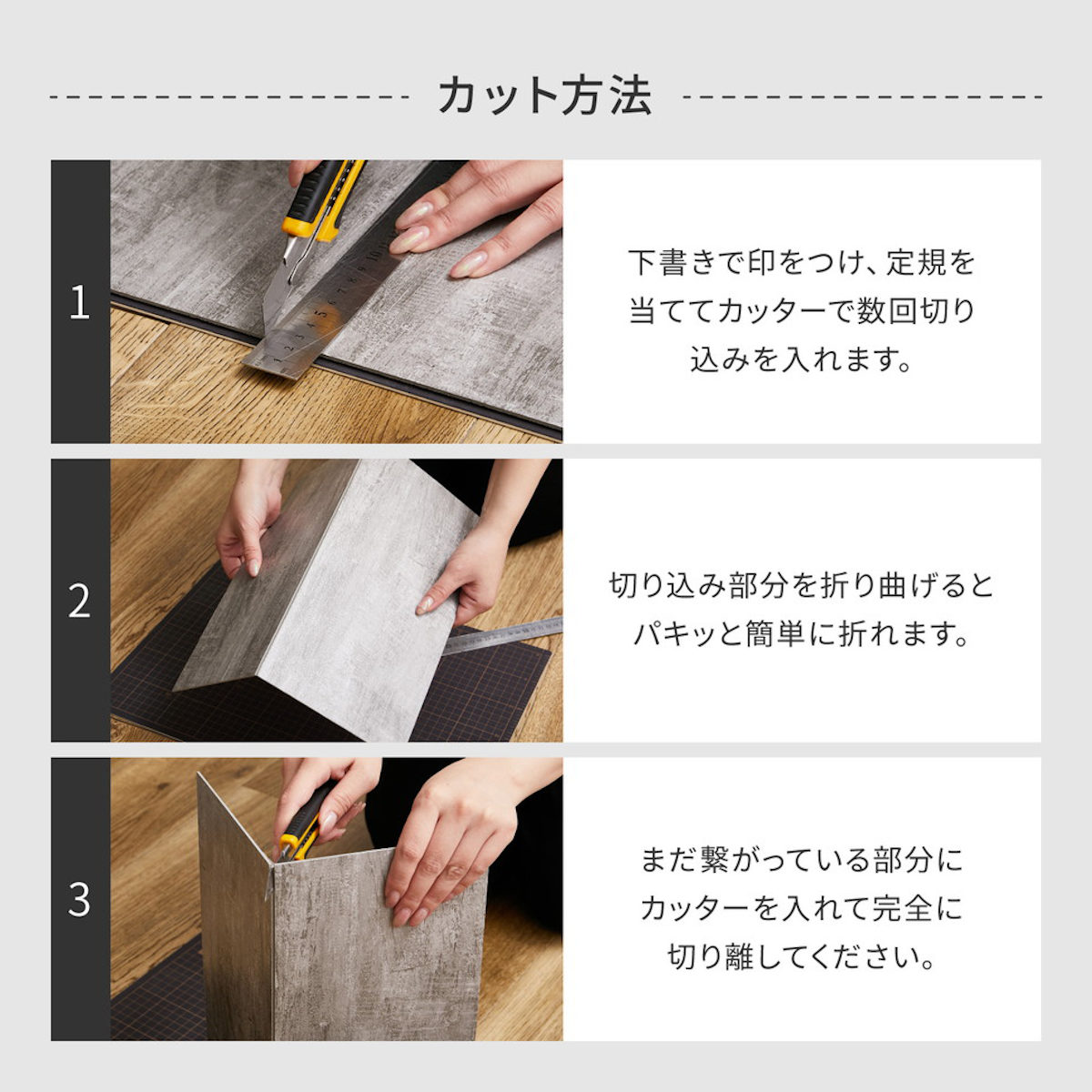 簡単にカットできて繰り返し使える木目調のフロアタイル
