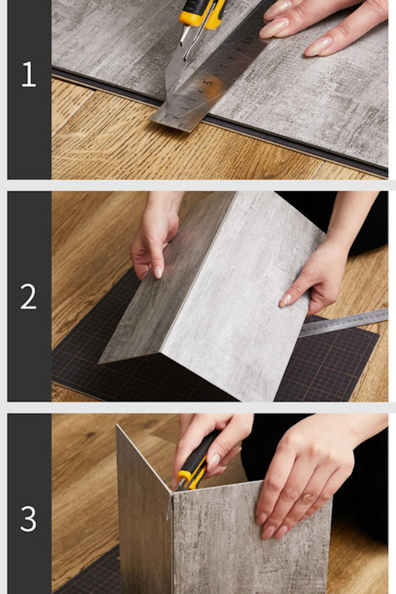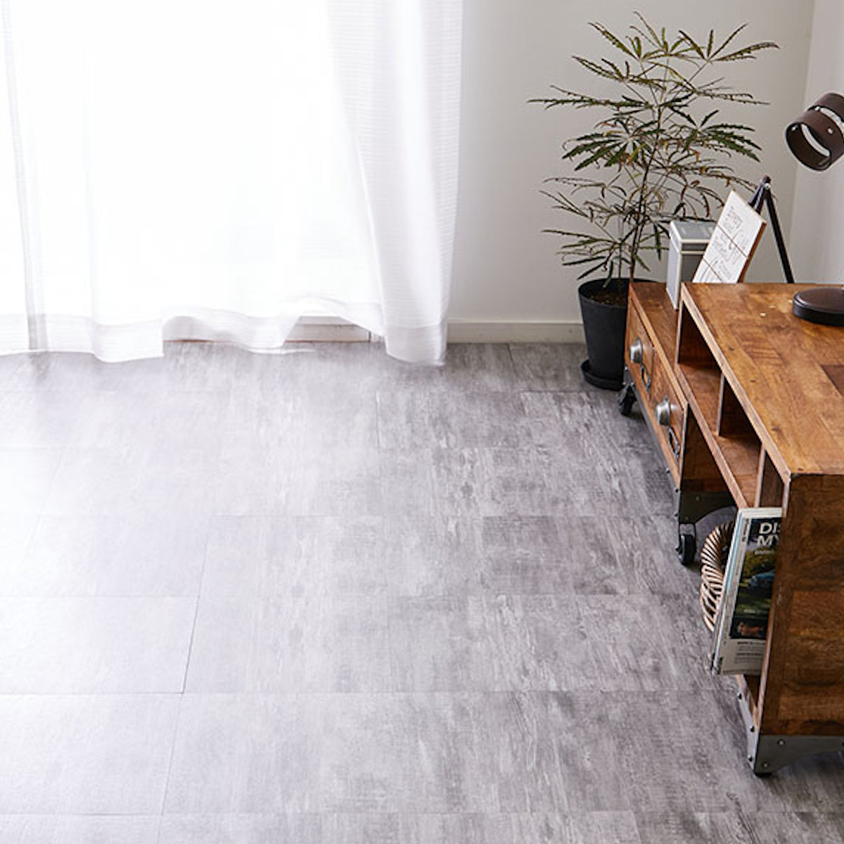 簡単にカットできて繰り返し使える木目調のフロアタイル