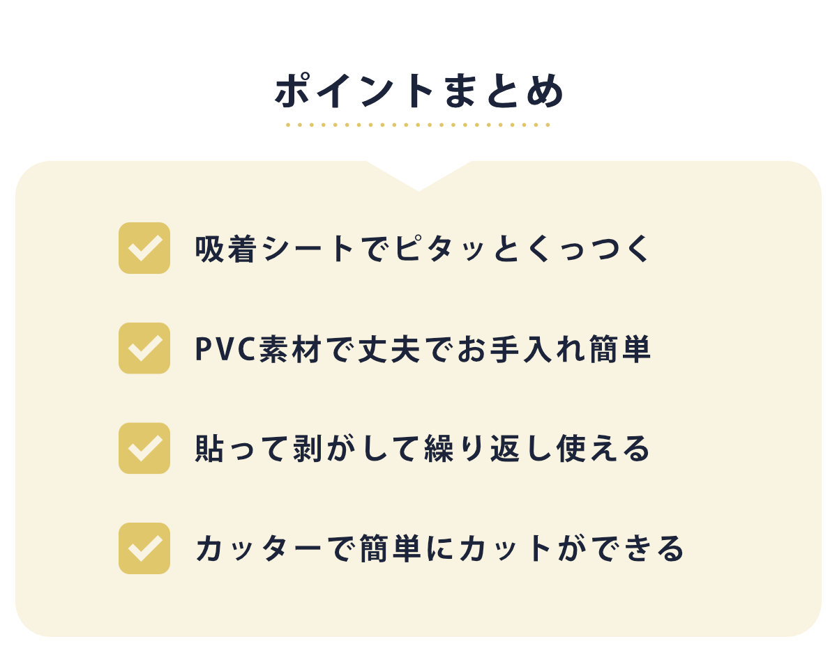 吸着力が落ちても、水洗いをすると粘着力が戻るので、何度でも繰り返してご使用いただけます。汚れた部分だけ剥がして洗ったり、敷き替えなども気軽に行えます。簡単にお部屋をイメージチェンジできる便利なアイテムです。