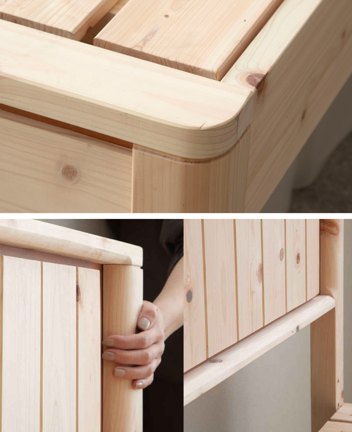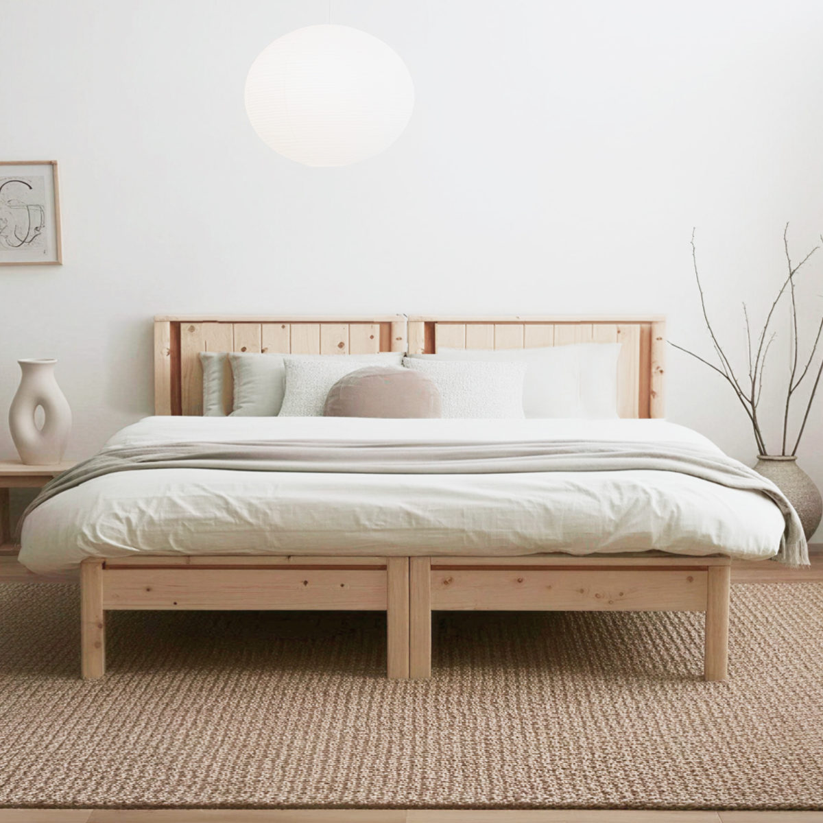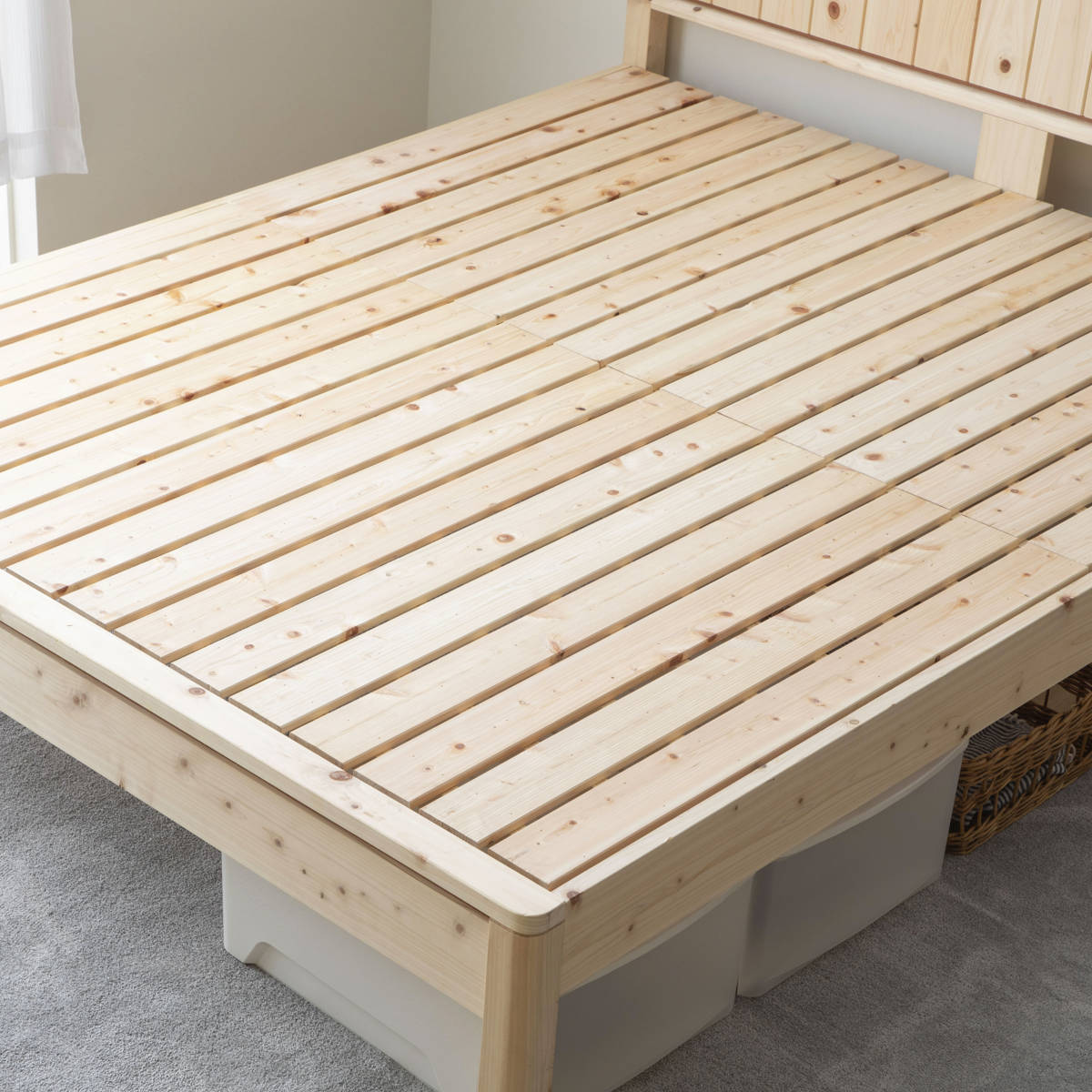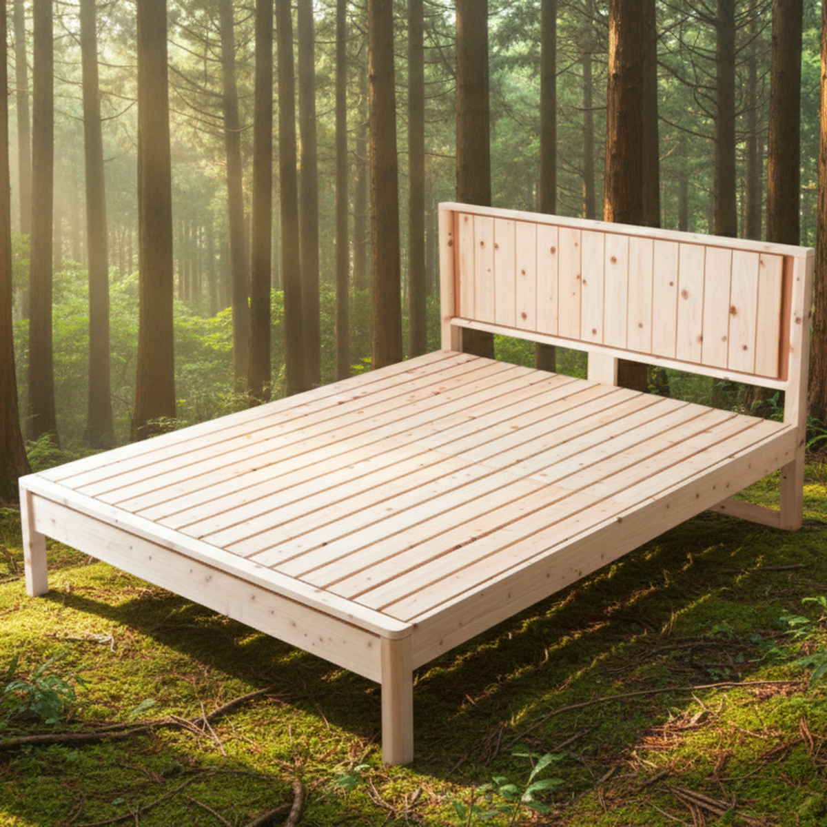 ひのき特有のやさしい香りが広がり、まるで森林浴のようなリラックス空間を演出できるベッドフレームです。毎日の眠りを、より心地よい時間へと導きます。