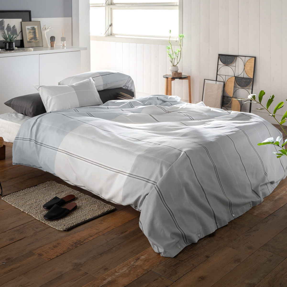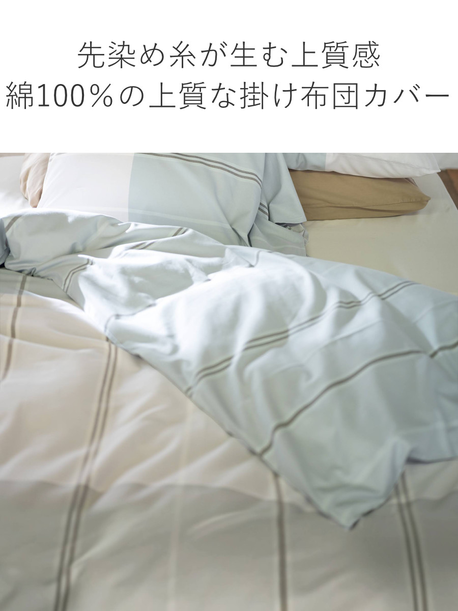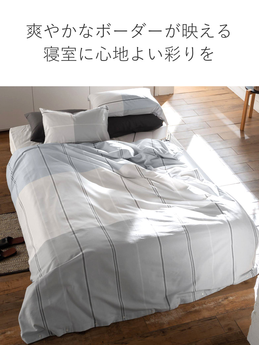 爽やかなボーダーが寝室に映える綿100%ツイルの掛け布団カバー