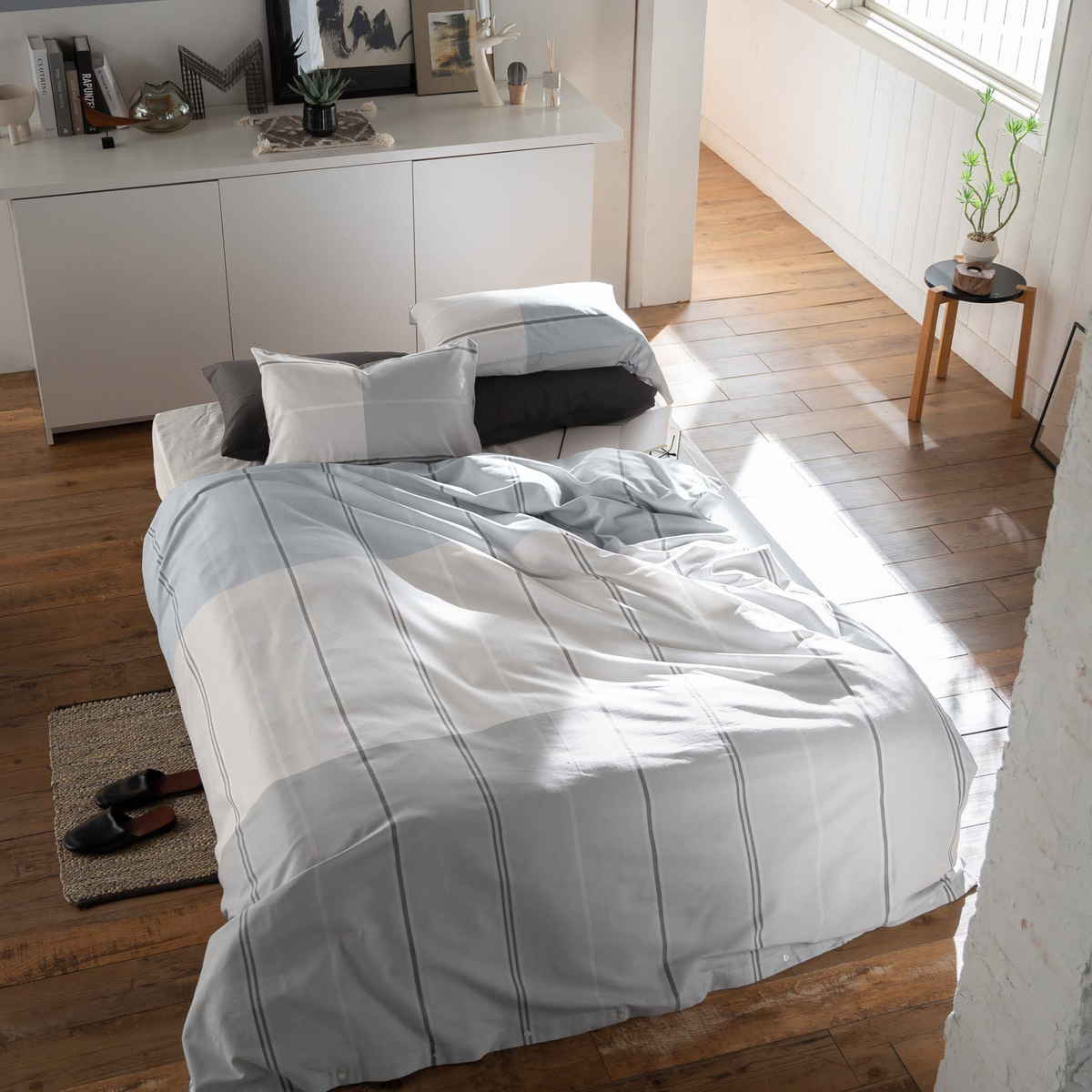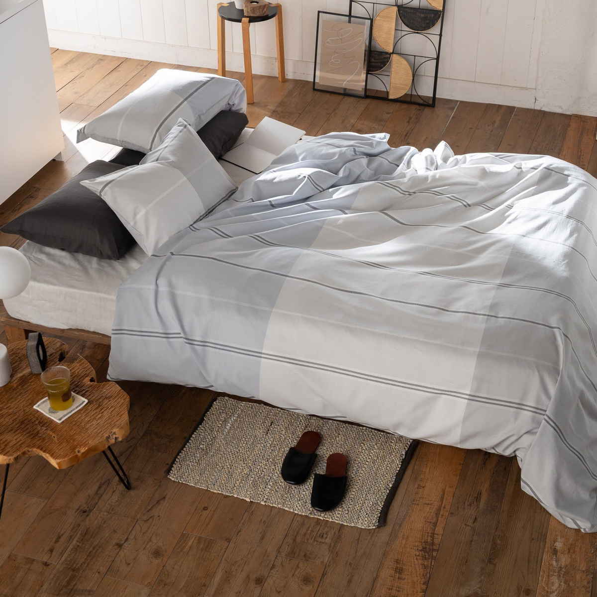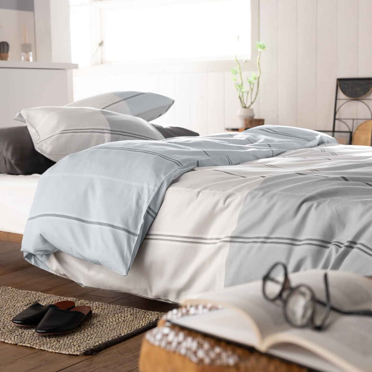 爽やかなボーダーが寝室に映える綿100%ツイルの掛け布団カバー