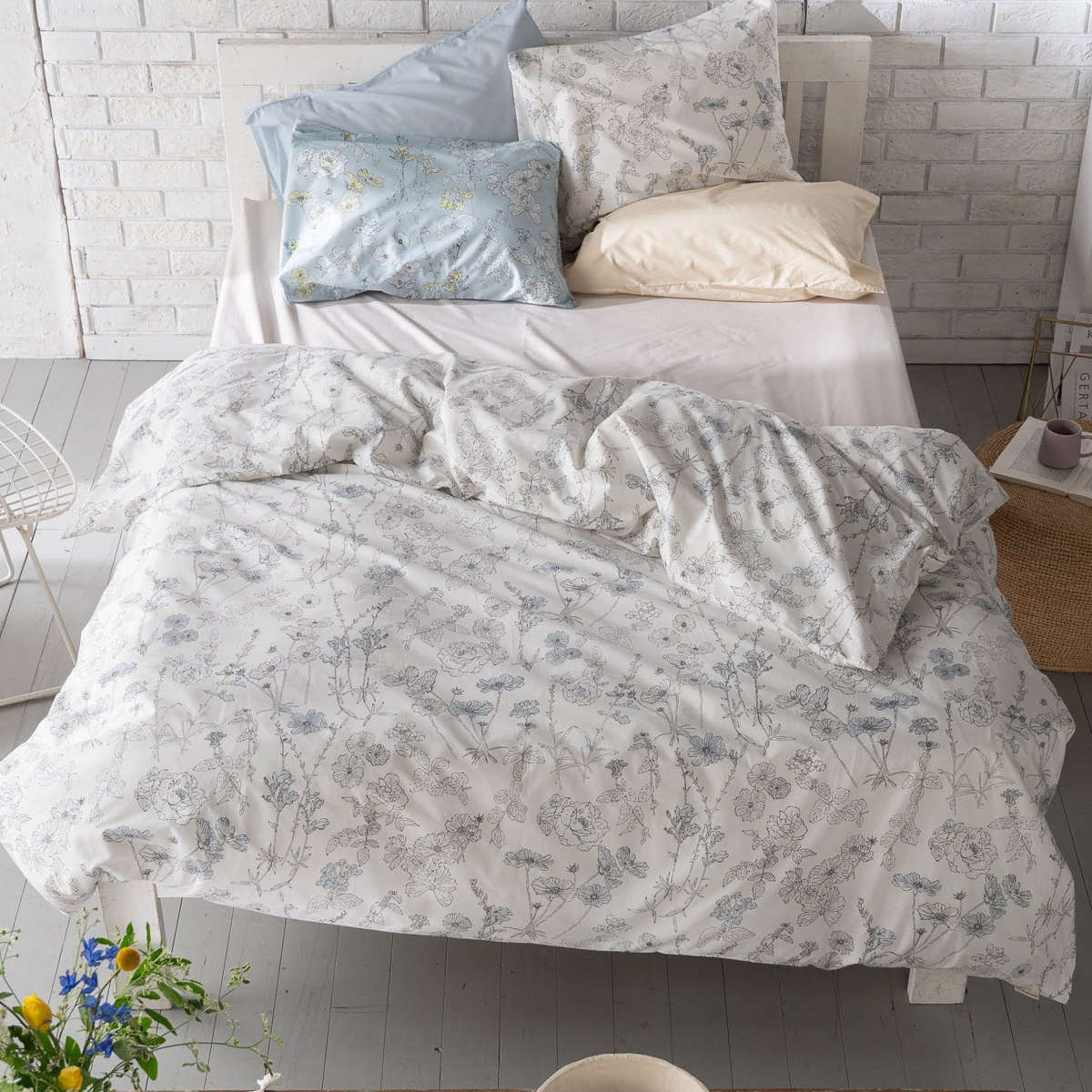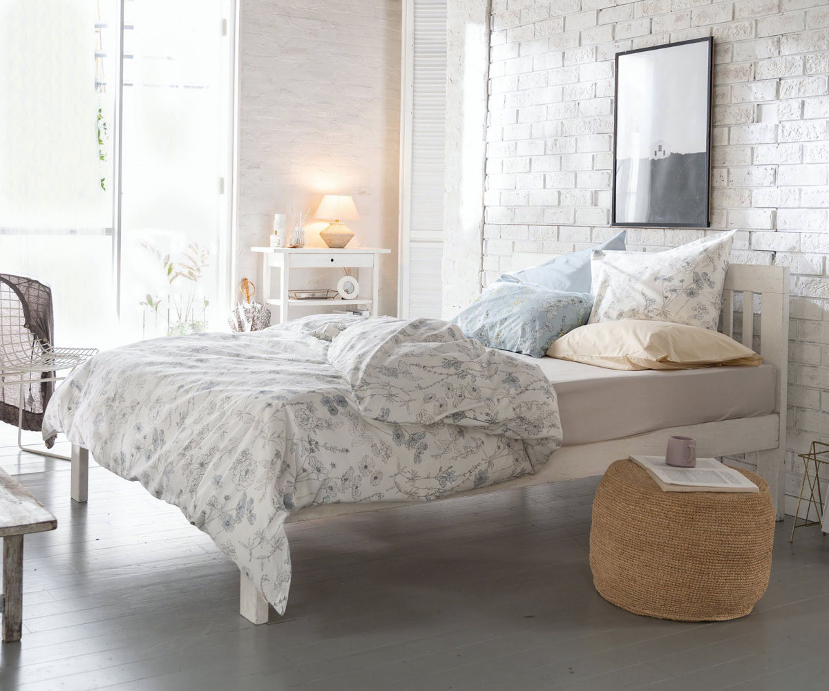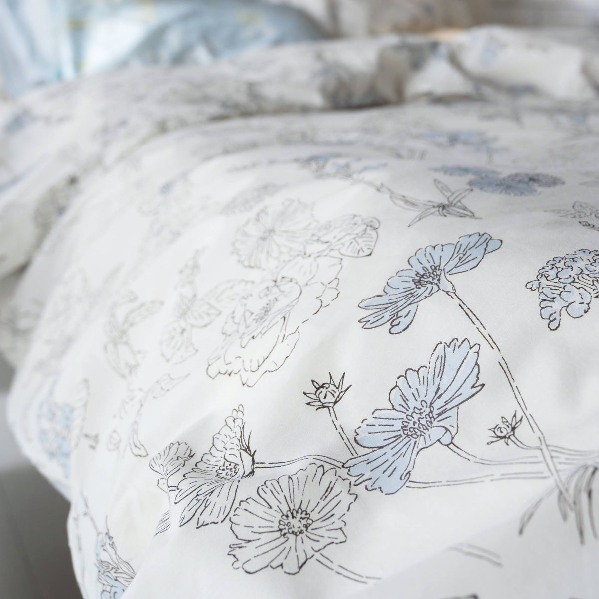 四季折々に咲く美しい花々を、細やかなラインで描いた植物画のようなデザインの掛け布団カバーです。花びらにふんわりと色をのせたシックなデザインが寝室を優しく彩り、毎日の眠りの時間を心地よく演出します。