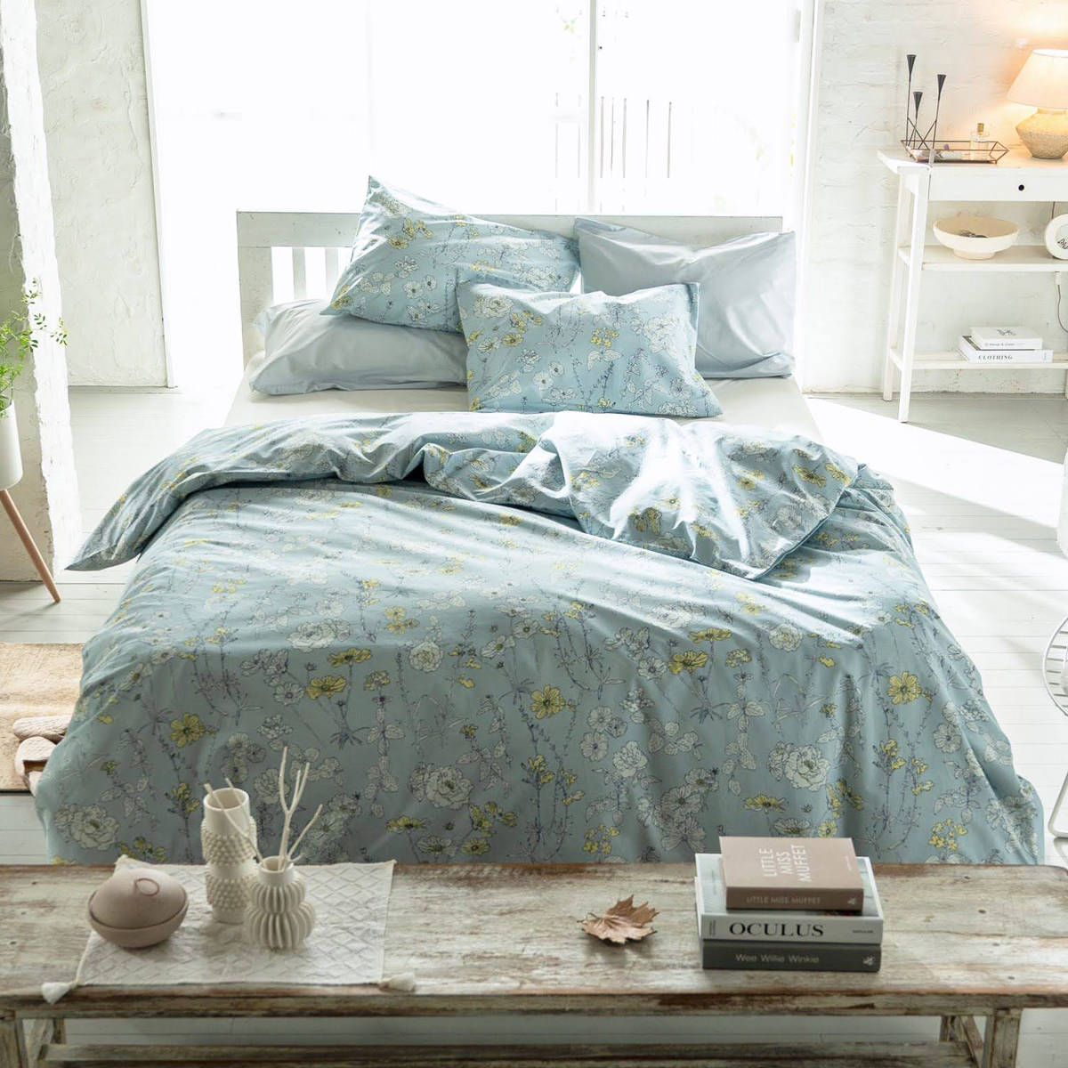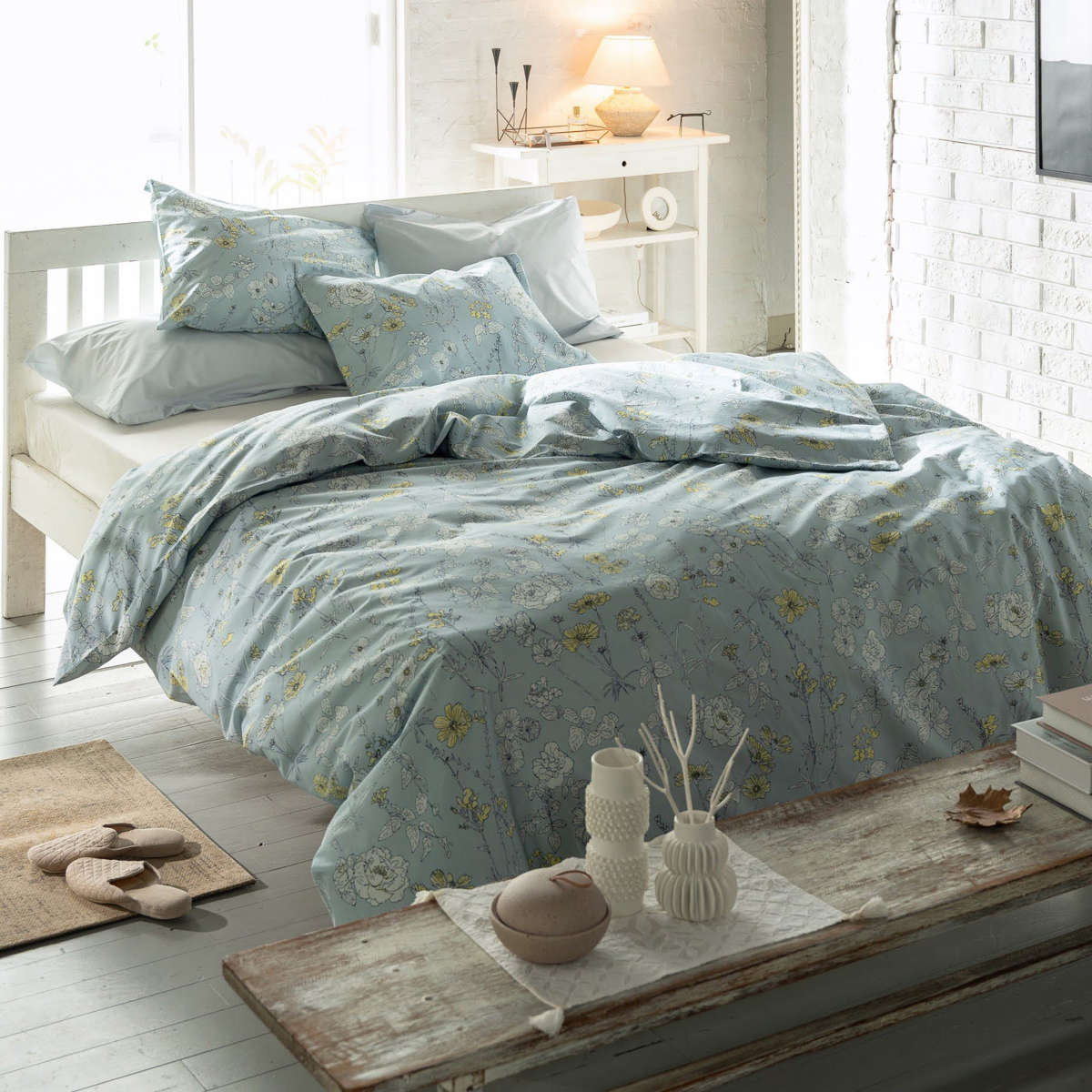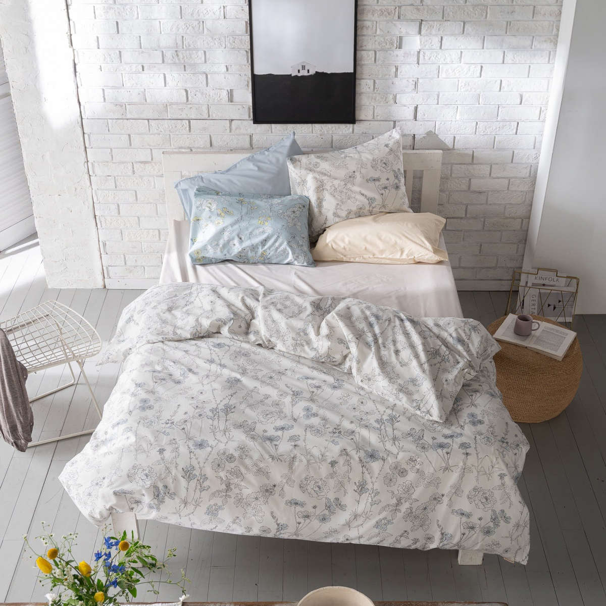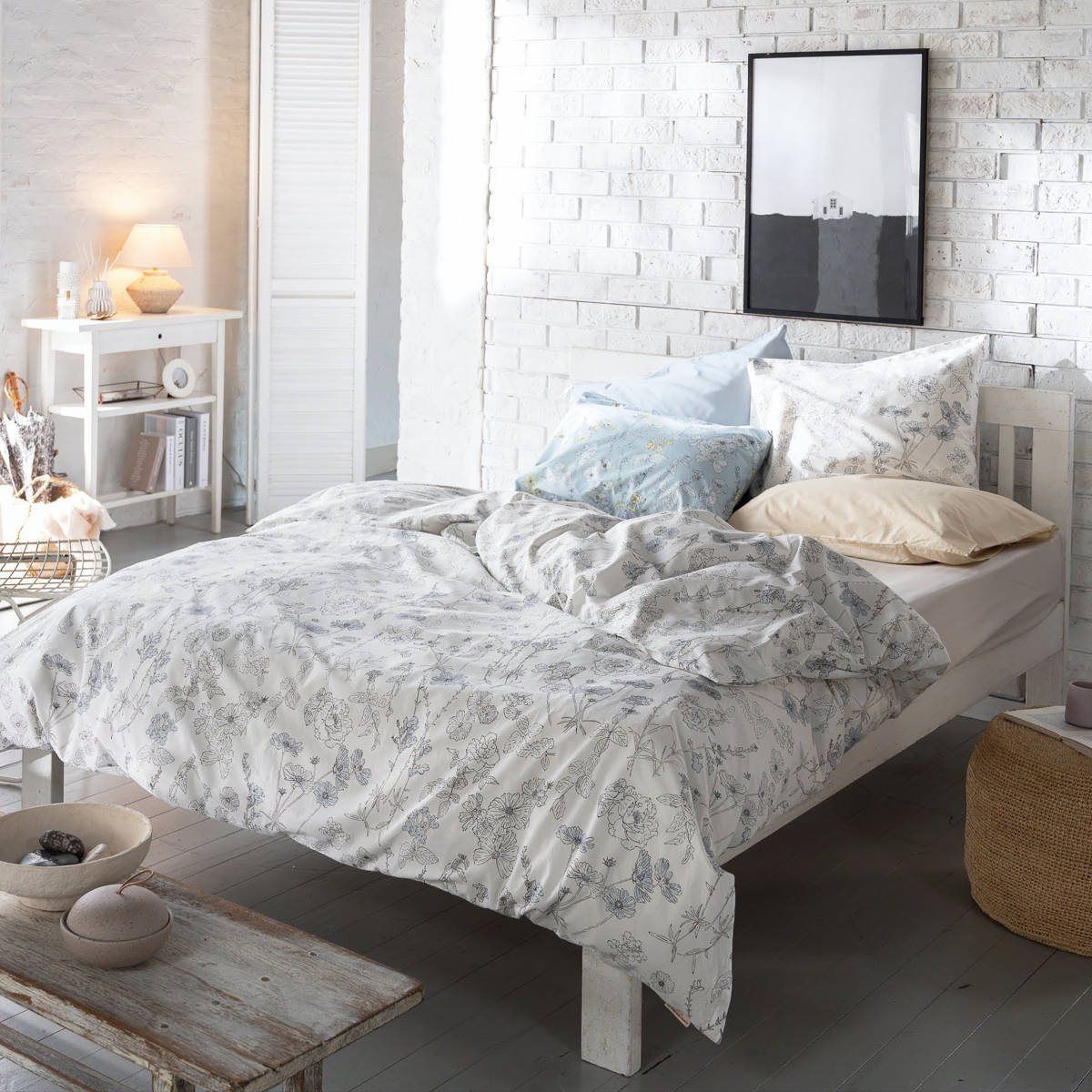 四季折々に咲く美しい花々を、細やかなラインで描いた植物画のようなデザインの掛け布団カバーです。花びらにふんわりと色をのせたシックなデザインが寝室を優しく彩り、毎日の眠りの時間を心地よく演出します。