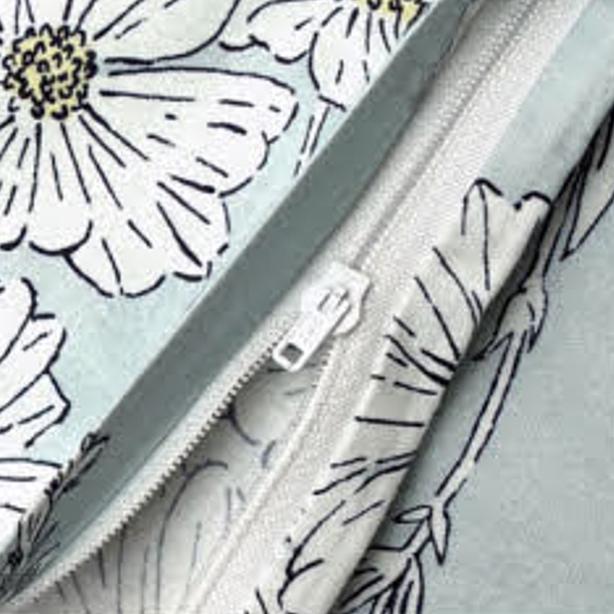 片側に全開するサイドファスナーが付いているので、布団の出し入れが簡単にできます。見返し付きで、ファスナーが直接肌に触れにくい仕様です。