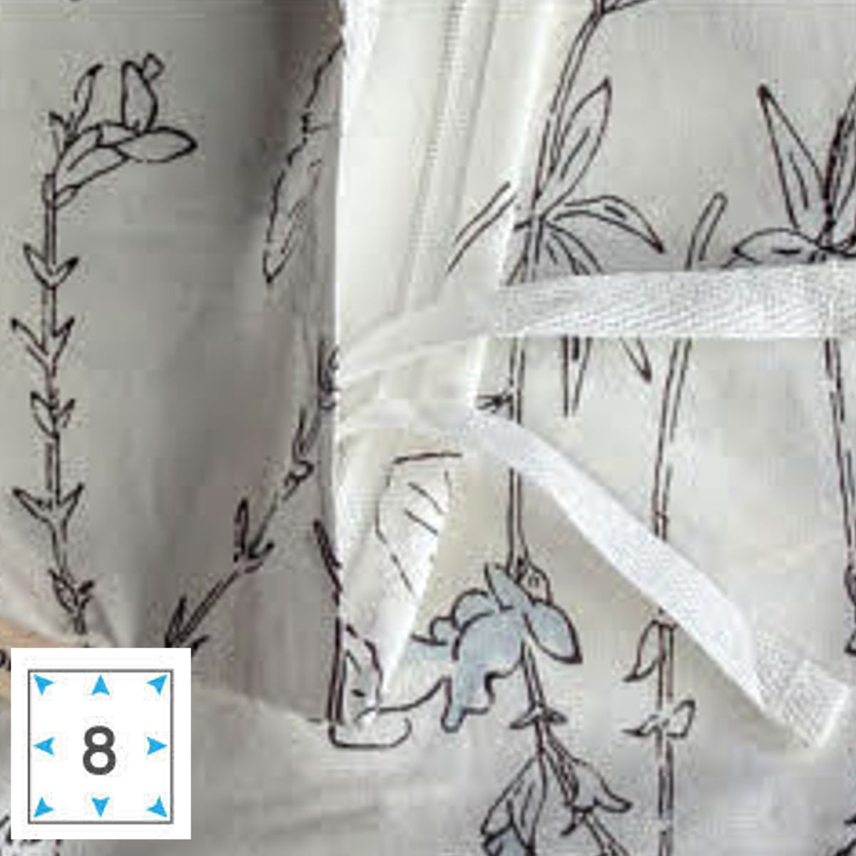 カバーの中で布団がズレないよう固定する為のヒモが8か所付いています。
