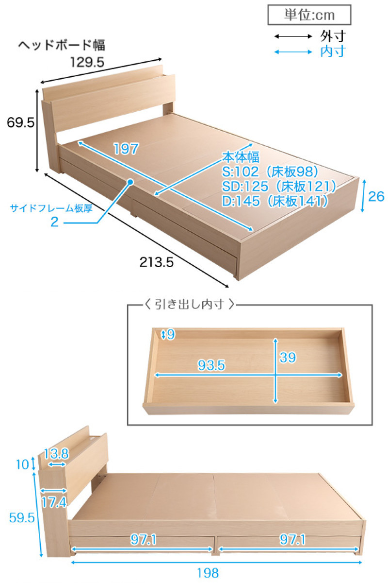 | 注意事項 | ※マットレスは付属しておりません ※商品ページ内には別の商品を含む画像を使用しています |