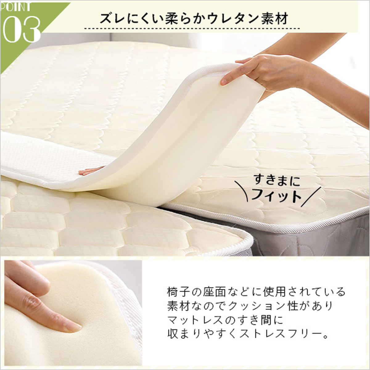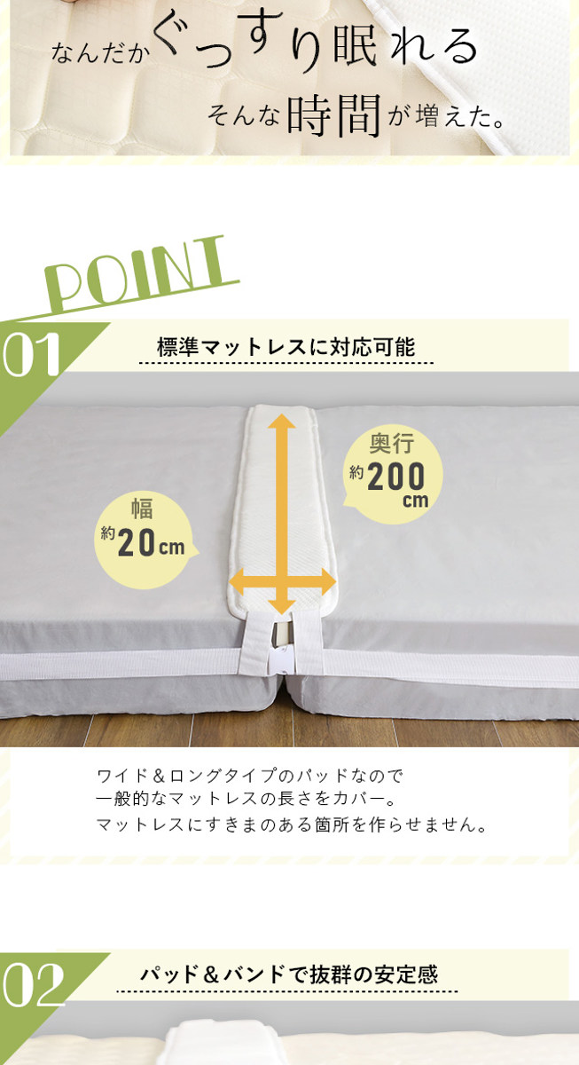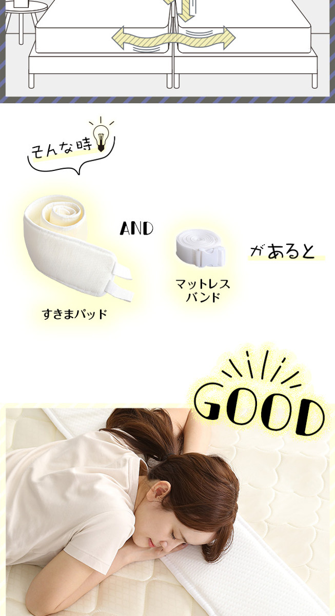 ●ベッドマットレスのすき間を埋めて快適な寝心地をつくります。