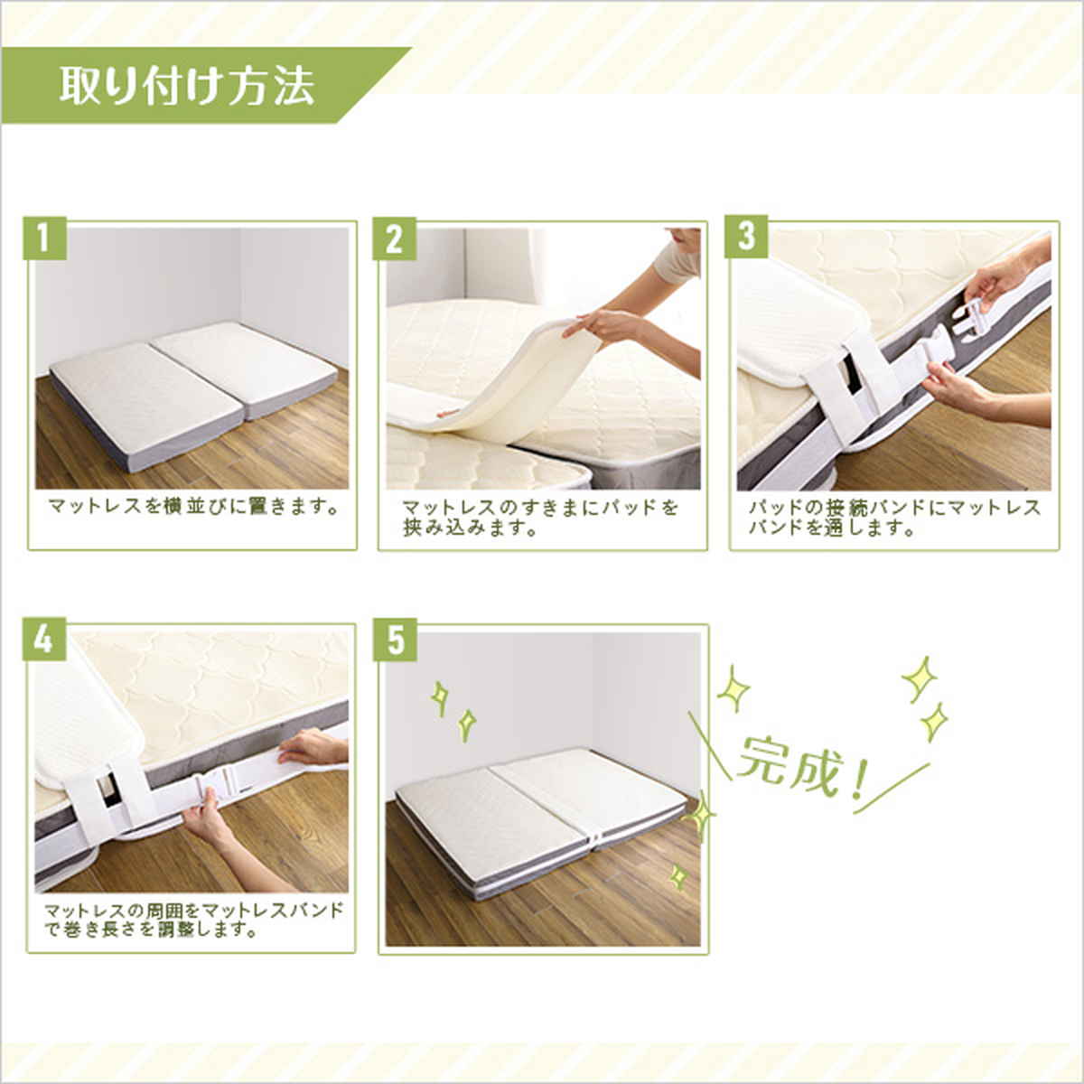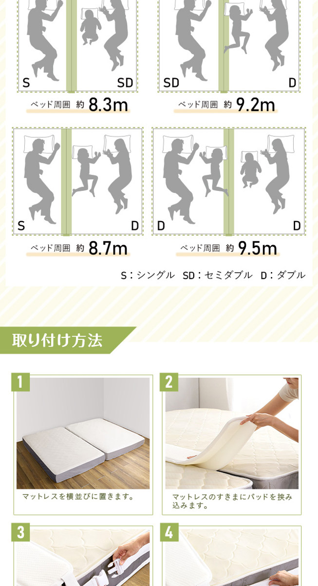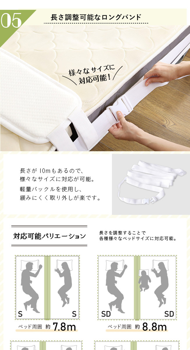 | 内容量 | すきまパッド:1個 マットレスバンド:1個 |