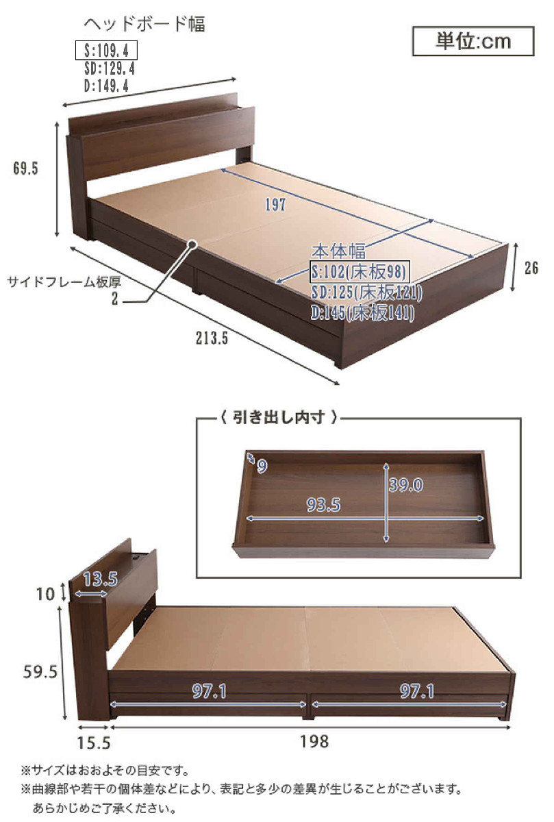 ![]() マットレス付き シングル | ![]() マットレス付き セミダブル | ![]() マットレス付き ダブル |