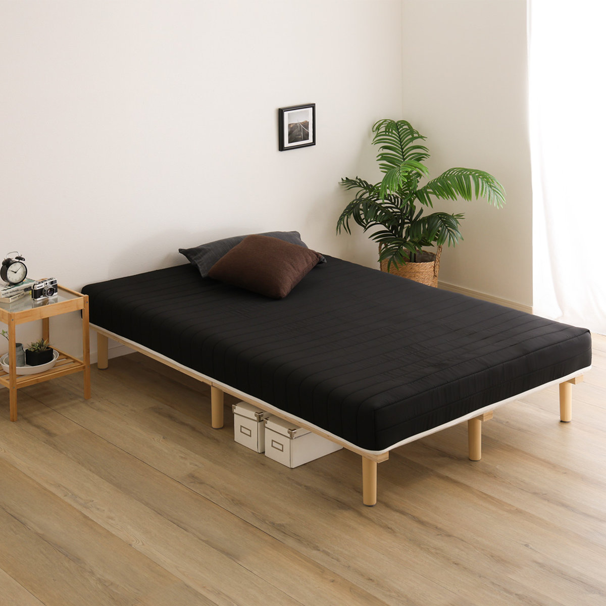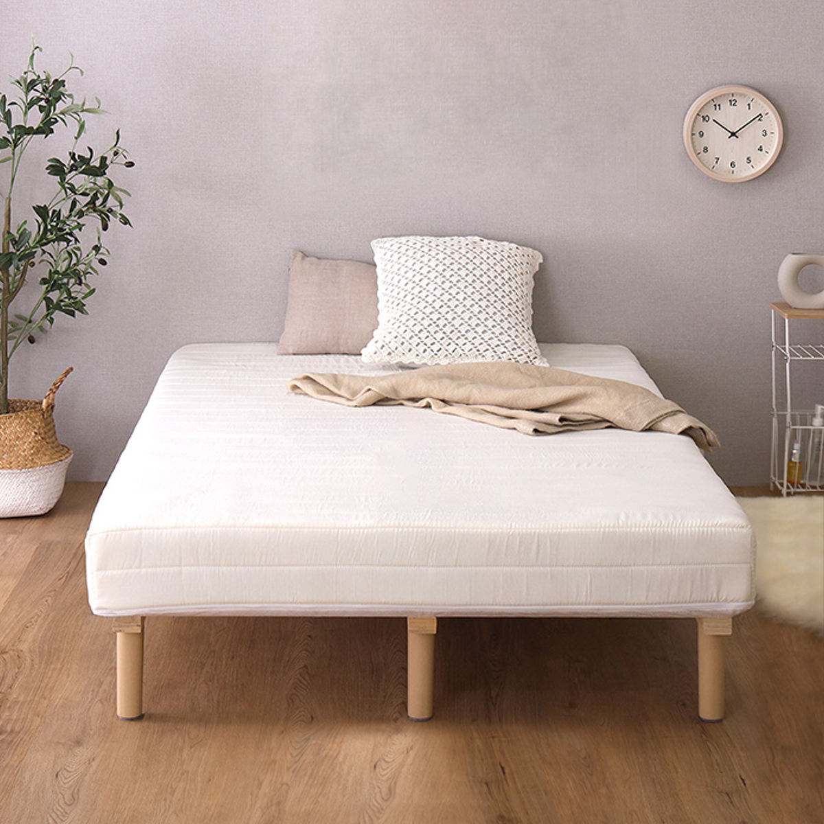 継ぎ目のない、一体型の脚付きマットレスです。良質なマットレスと通気性の良いすのこベッドを一体化した、 シンプルに暮らしたい人にぴったりなミニマルデザインです。フレームがないシンプルな構造なので、場所を取らずに設置できます。