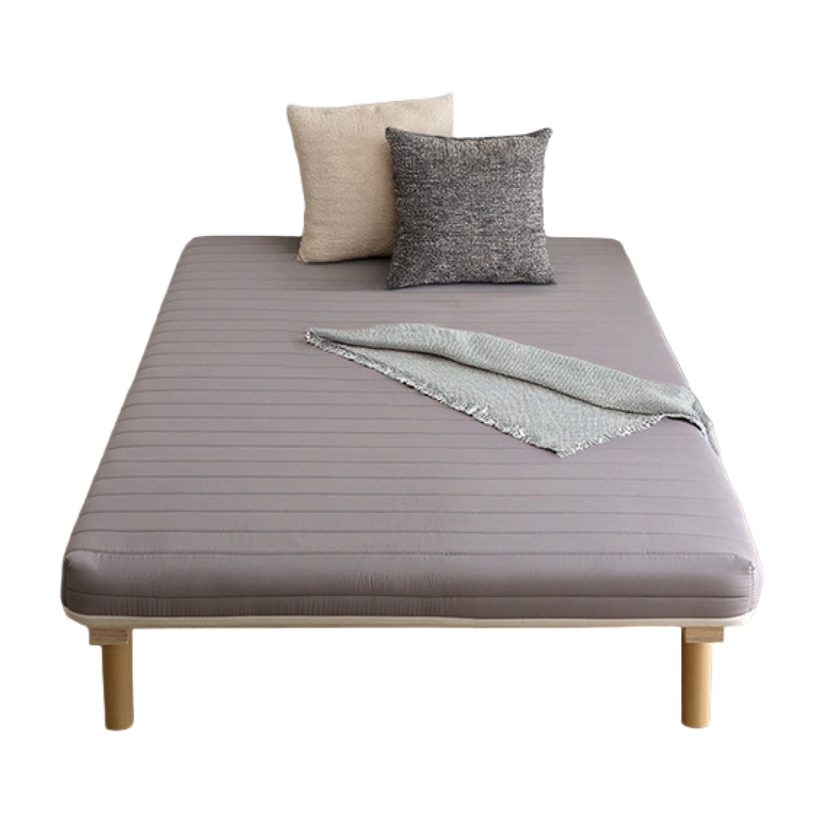 継ぎ目のない、一体型の脚付きマットレスです。良質なマットレスと通気性の良いすのこベッドを一体化した、シンプルに暮らしたい人にぴったりなミニマルデザインです。フレームがないシンプルな構造なので、場所を取らずに設置できます。