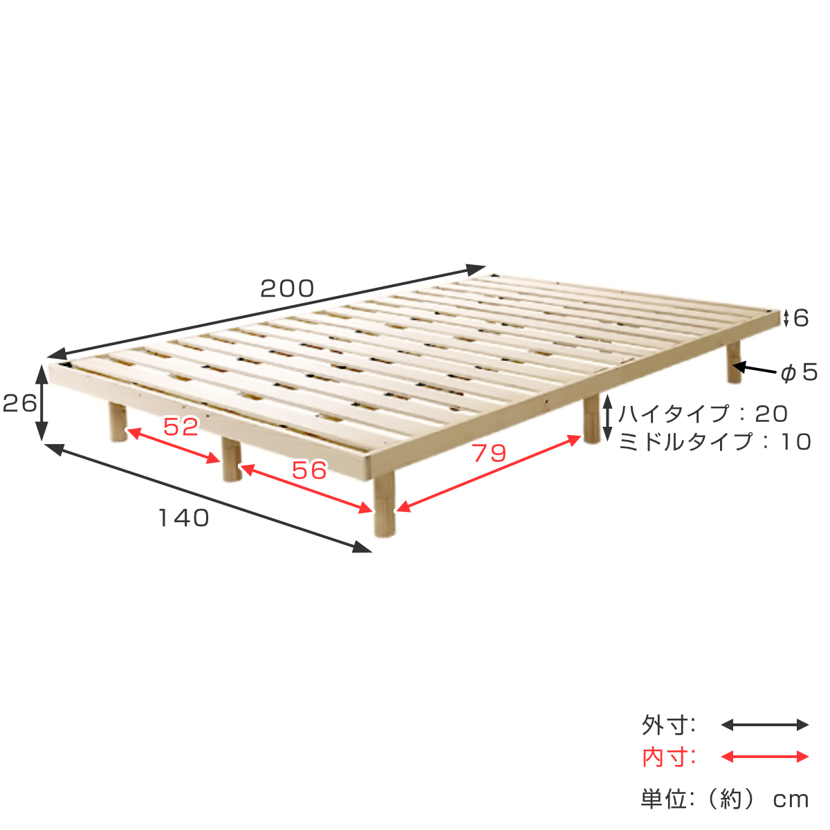 - フレーム:天然木(パイン材) すのこ:積層合板(LVL)