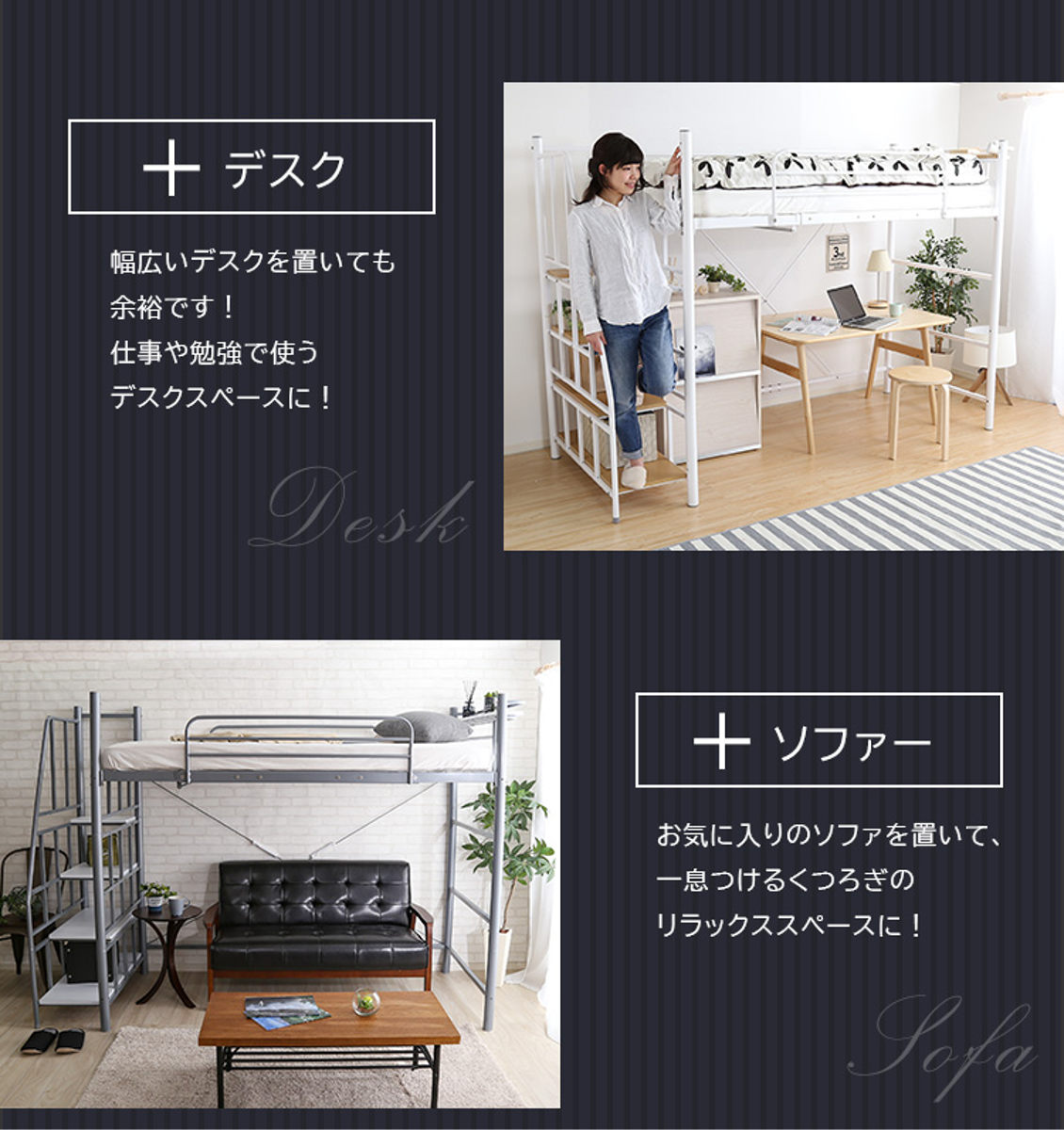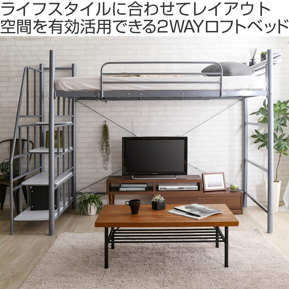 ライフスタイルに合わせて高さが変えられる2WAYロフトベッド