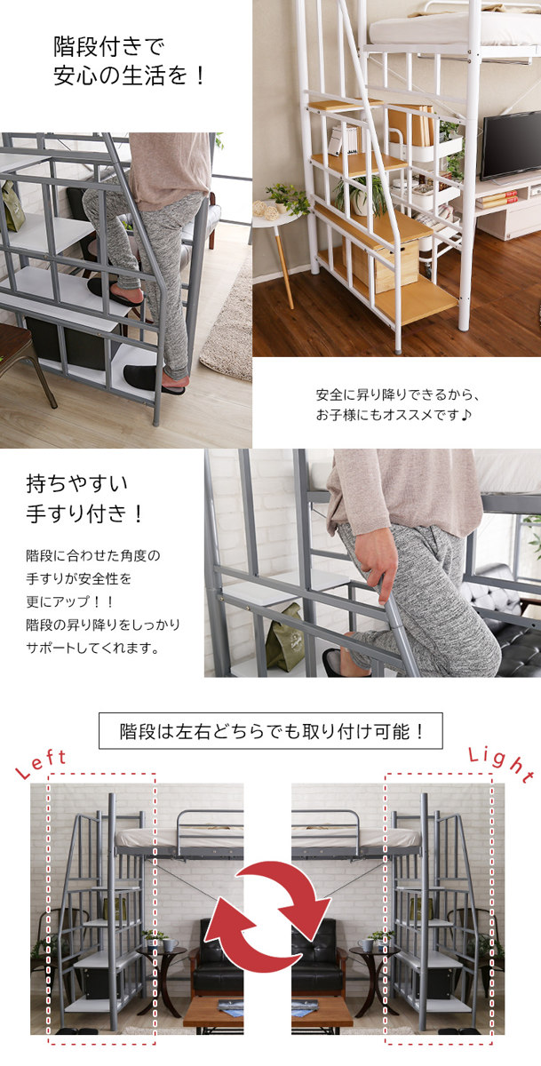 階段は宮棚同様、お部屋のレイアウトに合わせてベッドの左右どちらにも取り付け可能です。