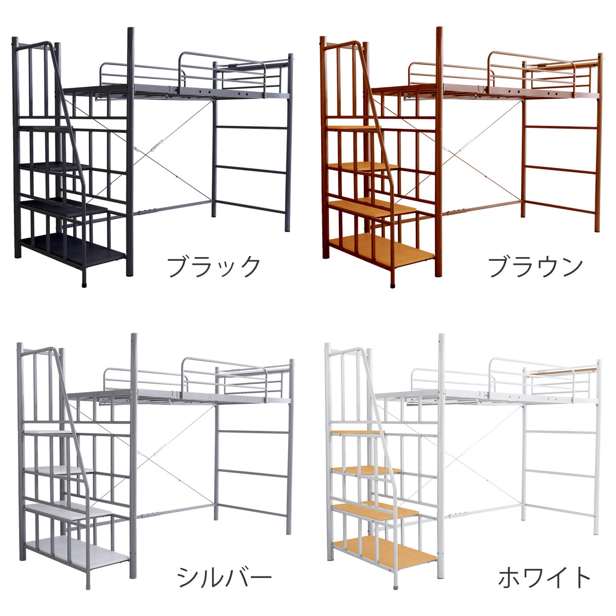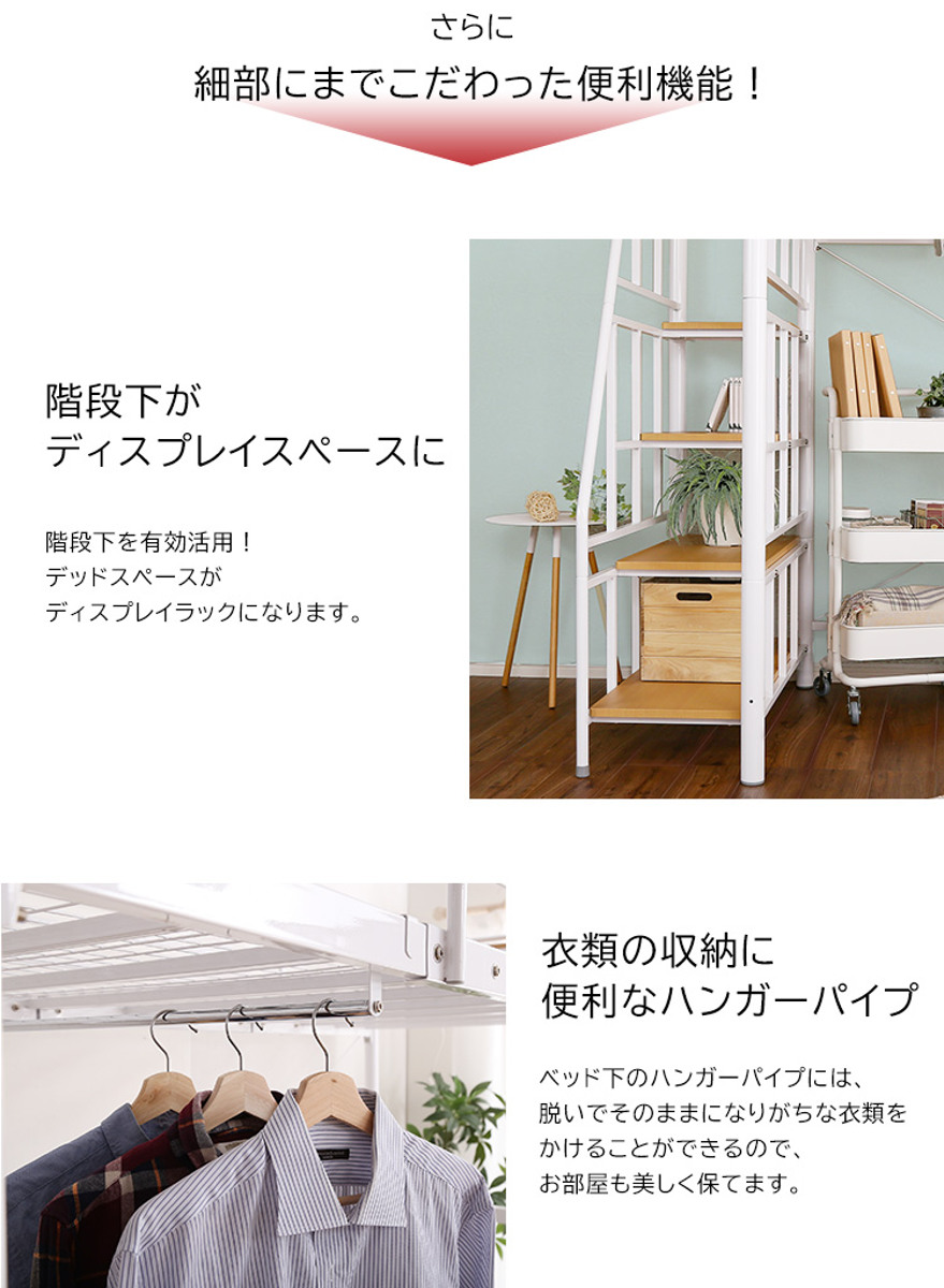 宮棚付きパイプロフトベッド シングル