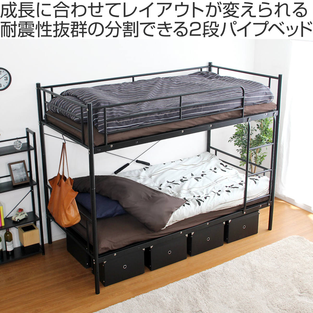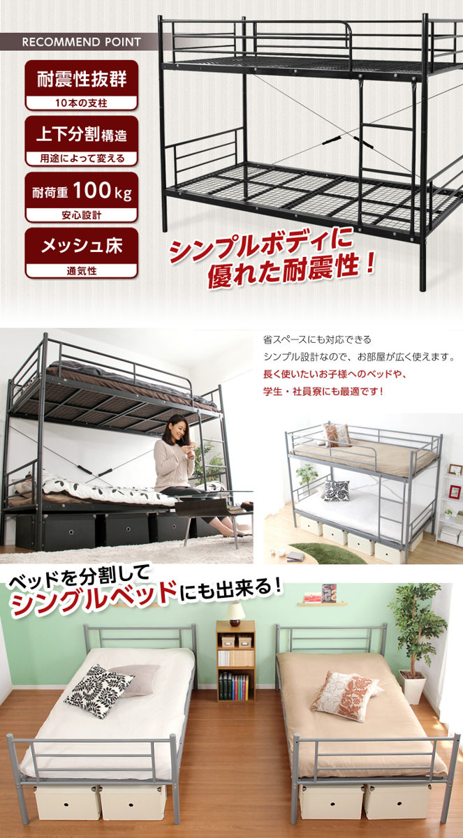 分割してレイアウト変更できる、耐震性に優れた2段ベッド