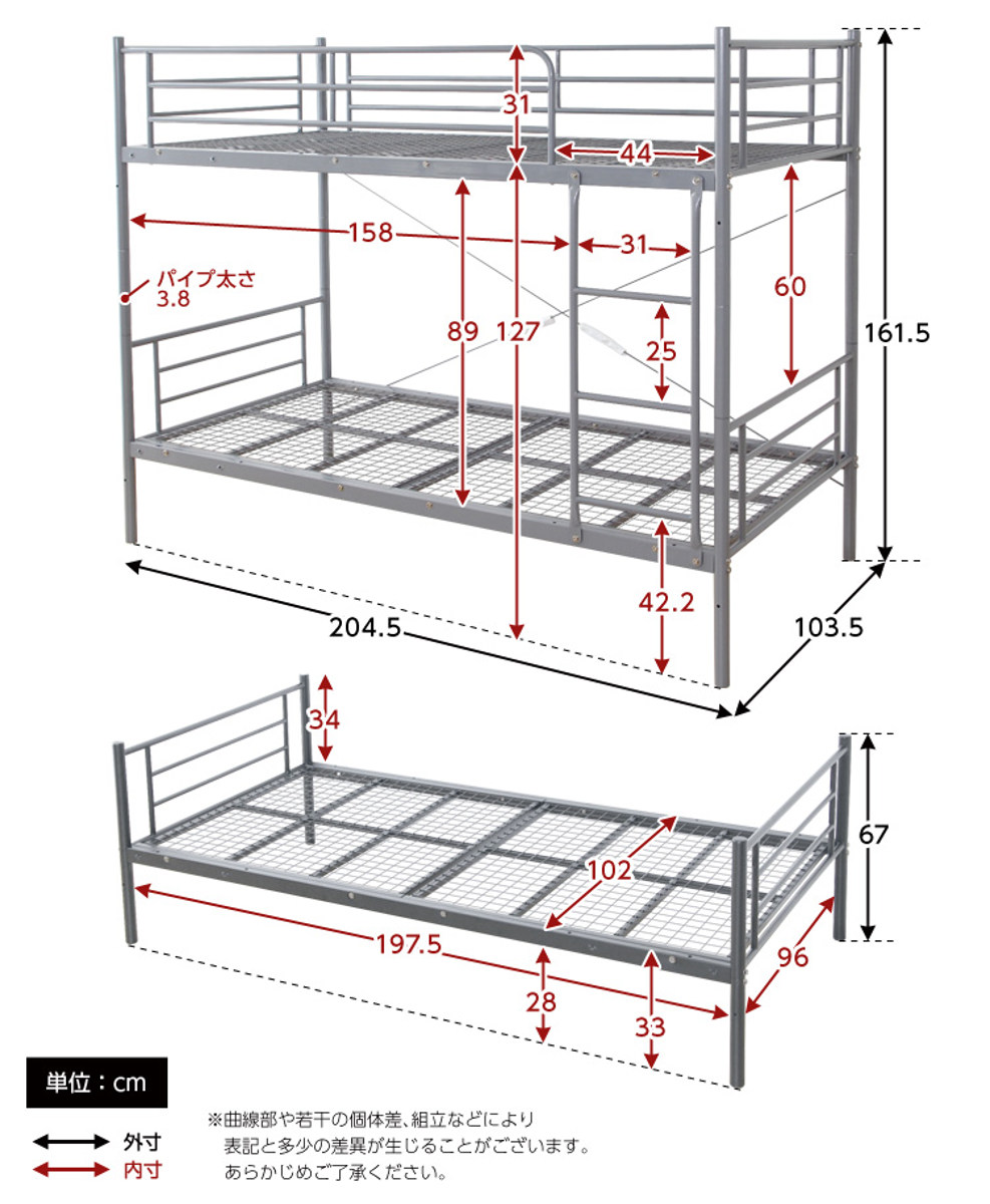 スチールフレーム2段ベッド