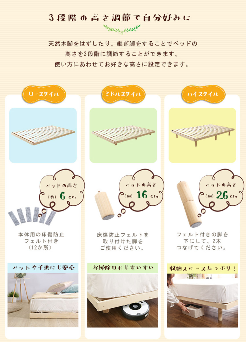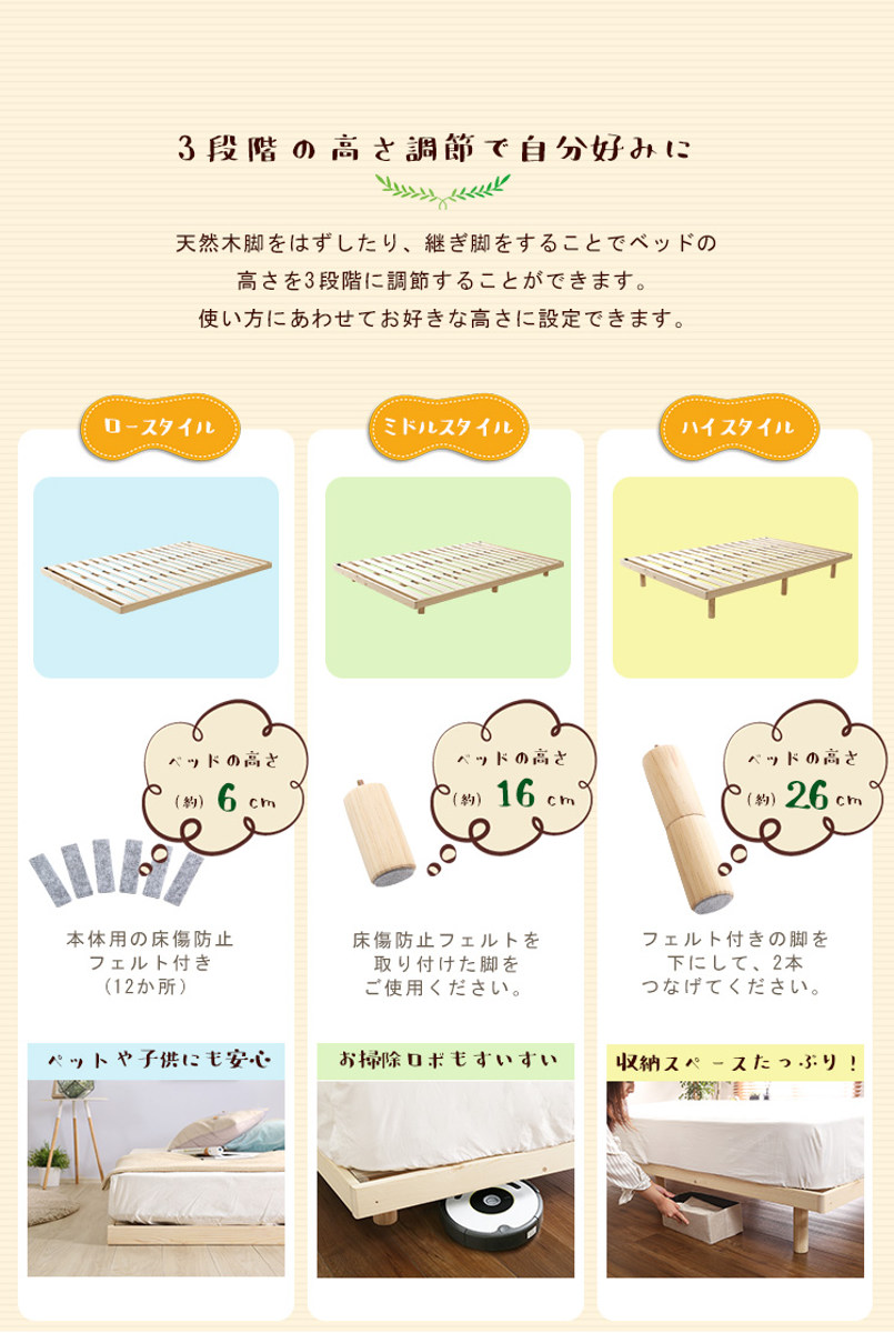 3段階に高さが変えられるすのこベッド