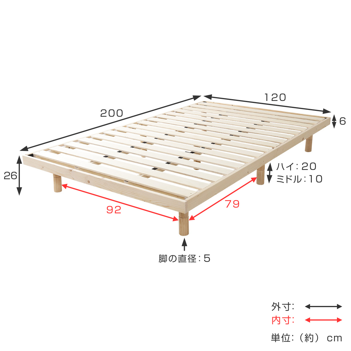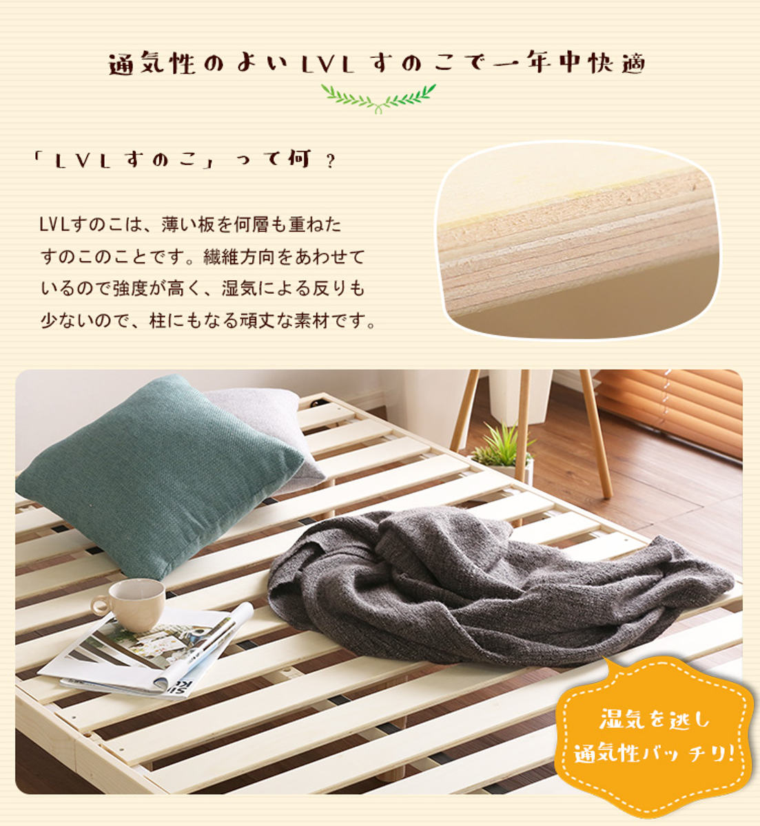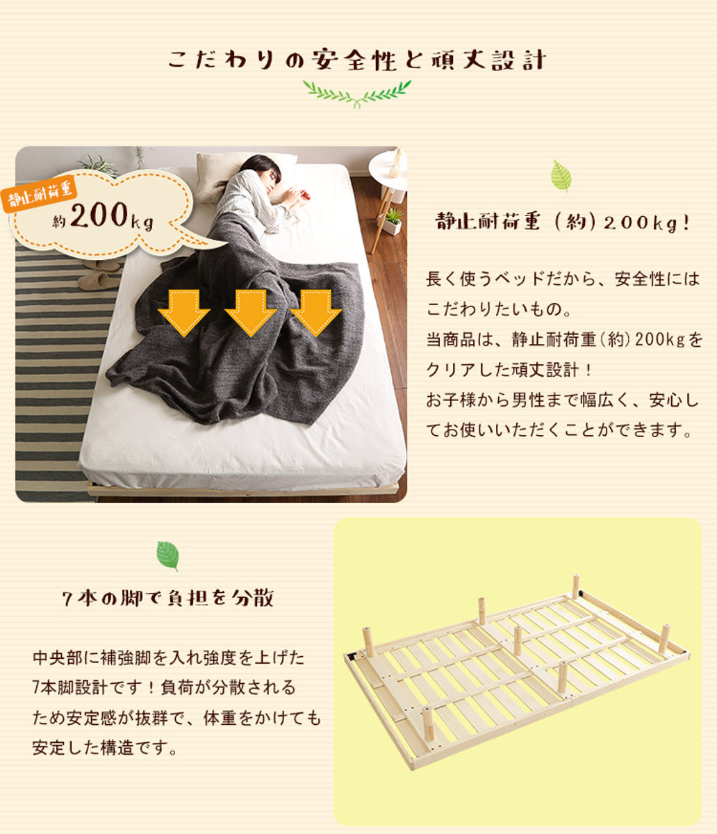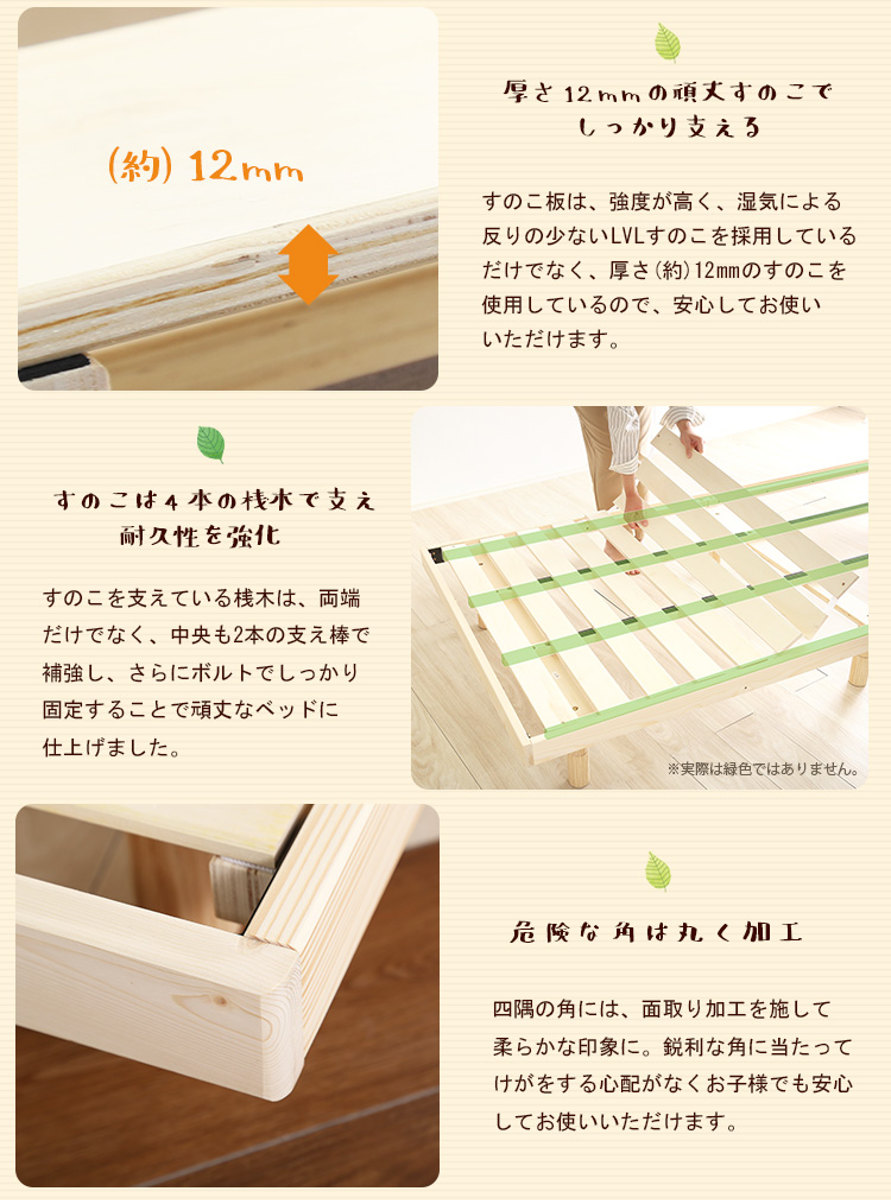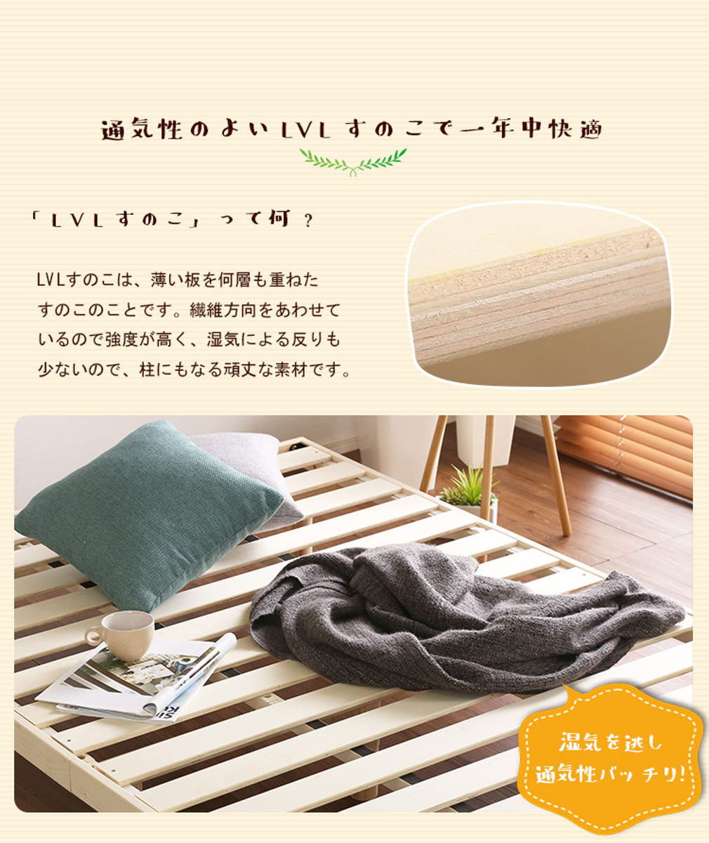 - フレーム:天然木(パイン材) すのこ:積層合板(LVL)