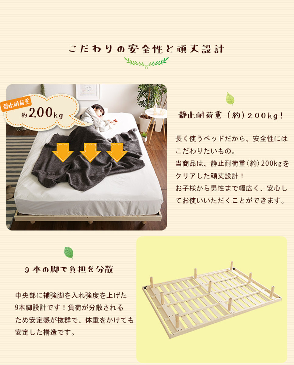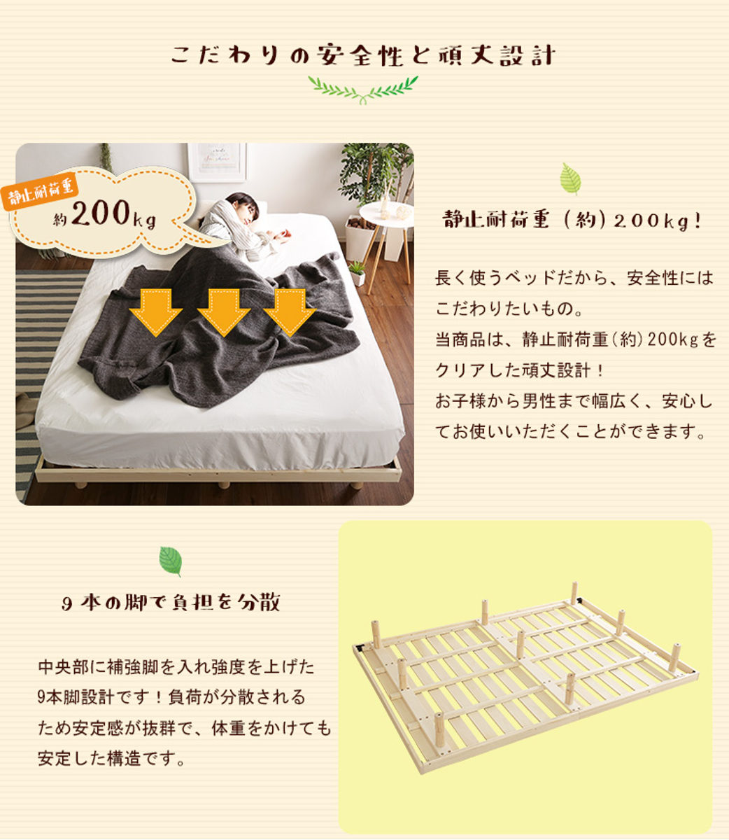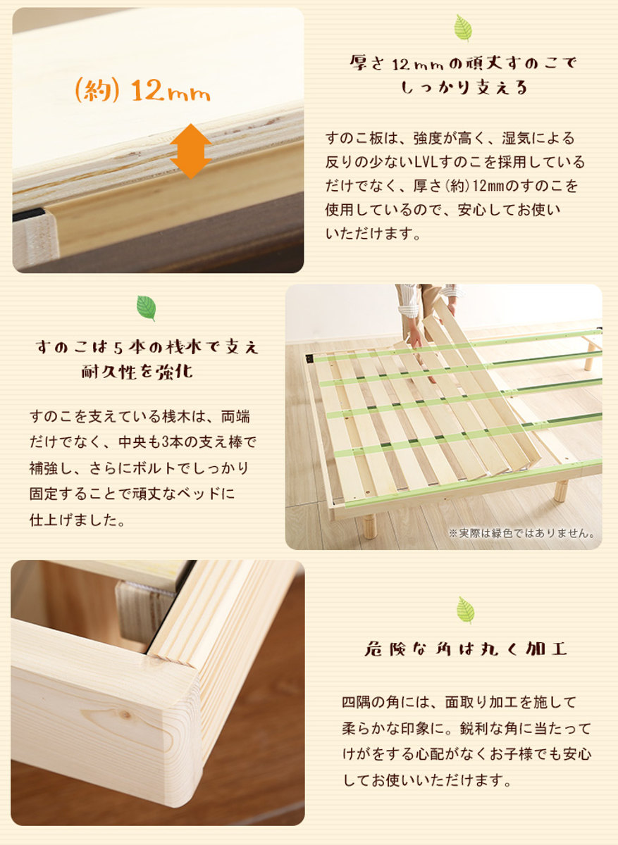 - フレーム:天然木(パイン材) すのこ:積層合板(LVL)