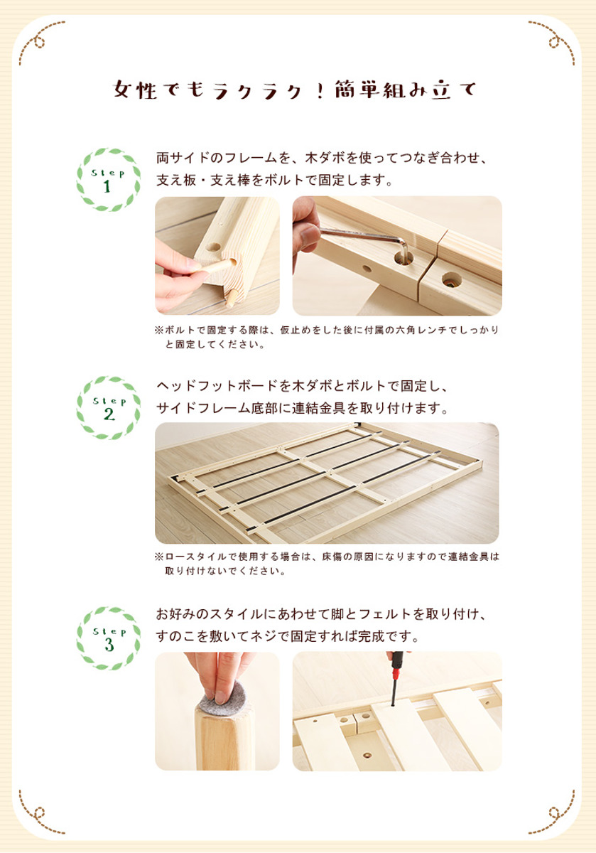 | 材質 | フレーム:天然木(パイン材) すのこ:積層合板(LVL) |
