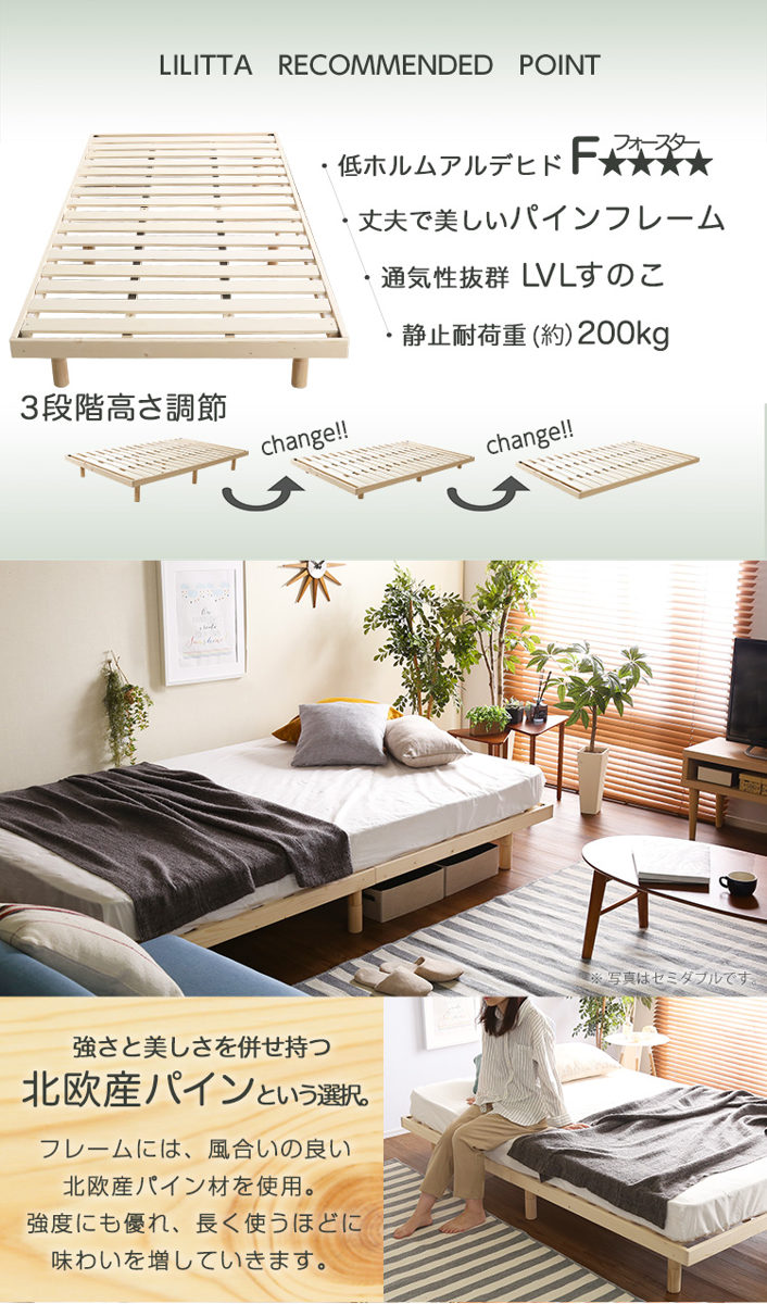 3段階に高さが変えられるマットレス付きすのこベッド