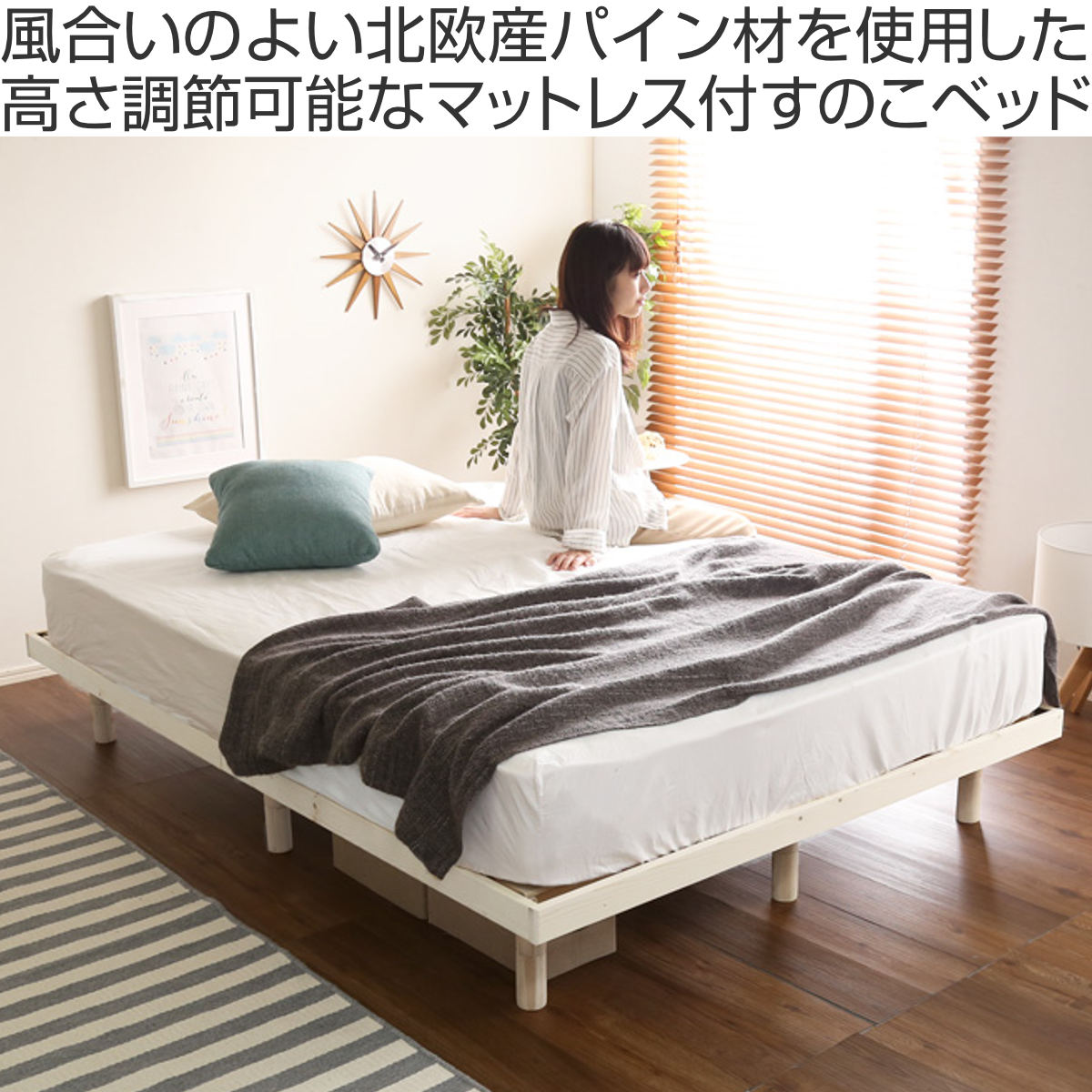 | 材質 | 【ベッド】 本体:天然木(パイン材) すのこ:合板(LVL) 表面材:ラッカー塗装(ホワイトウォッシュ、ブラウン)、無塗装(ナチュラル) 【マットレス】 張り材:ポリエステル100% クッション材:ポケットコイル、ウレタンフォーム、不織布 |
