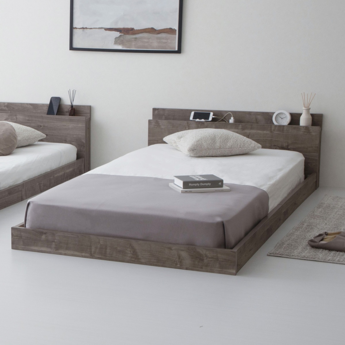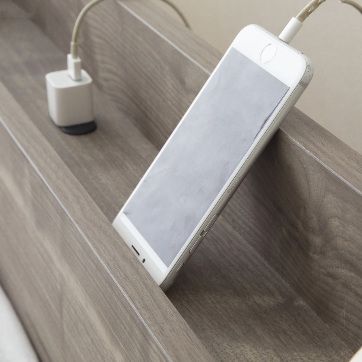ヘッドボードにはコンセントが付いているため、スマートフォンの充電や照明などに便利です。ベッドで過ごす時間をより快適にしてくれる機能です。