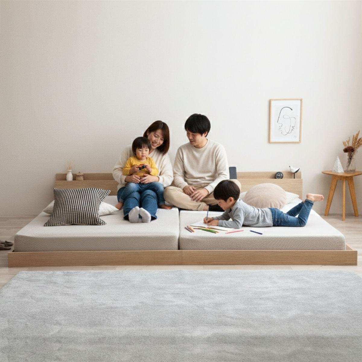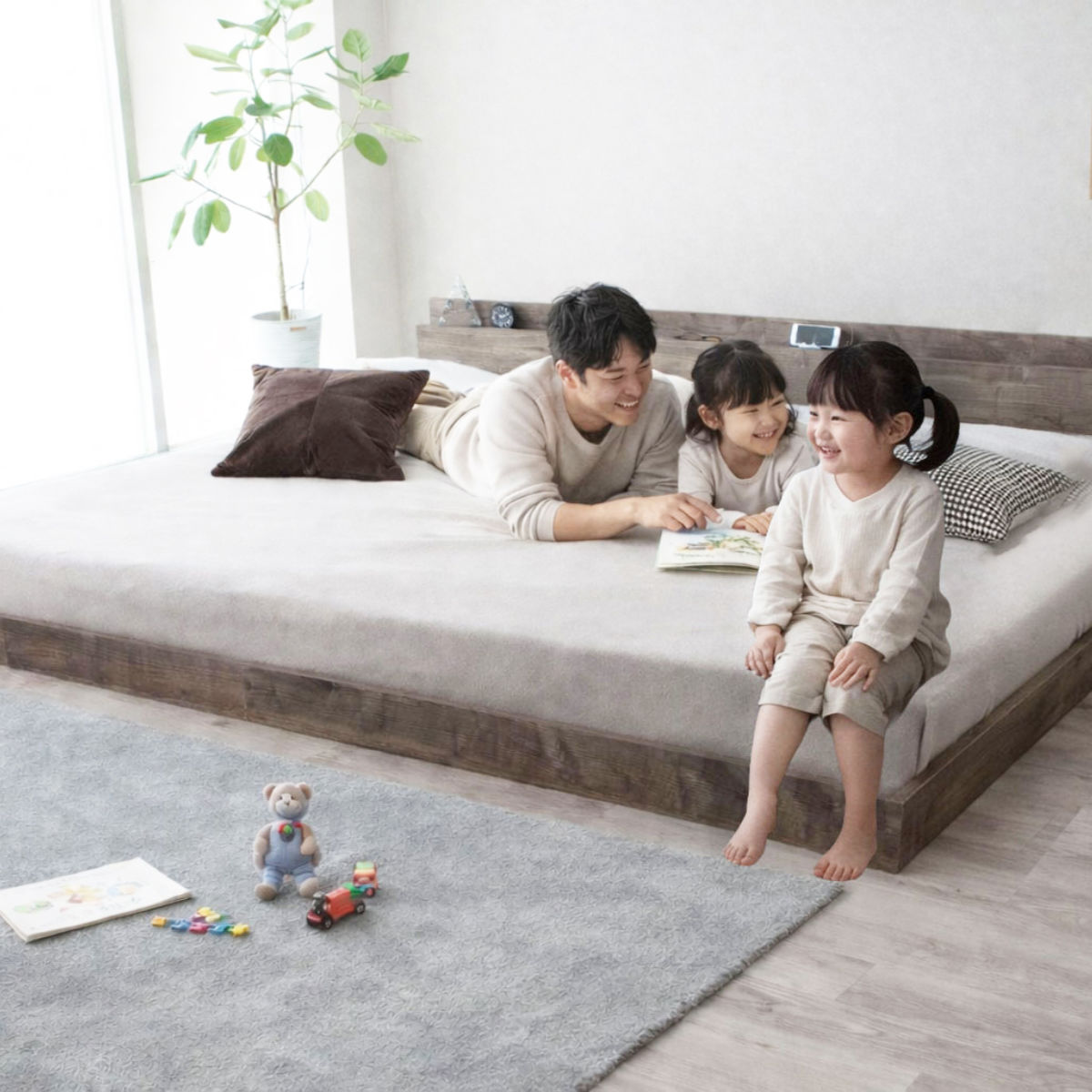 シンプルなフレーム設計なので、ベッドを並べて広々と使うことも可能です。ご夫婦での使用はもちろん、お子さまと一緒に眠るファミリーベッドとしてもおすすめです。ライフスタイルの変化に合わせて柔軟にお使いいただけます。