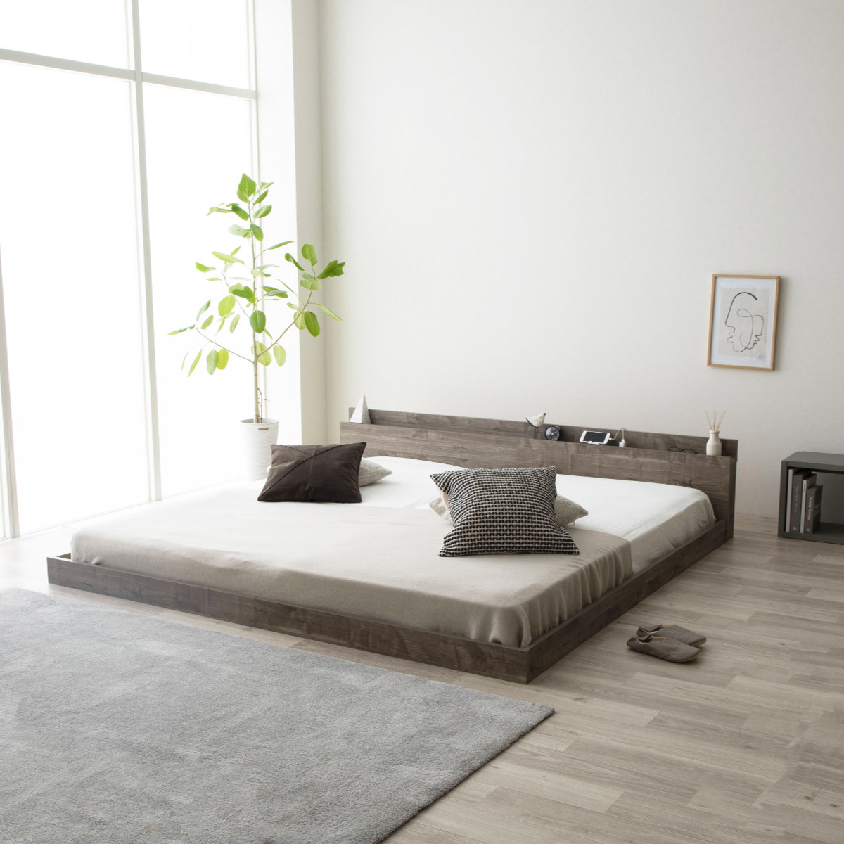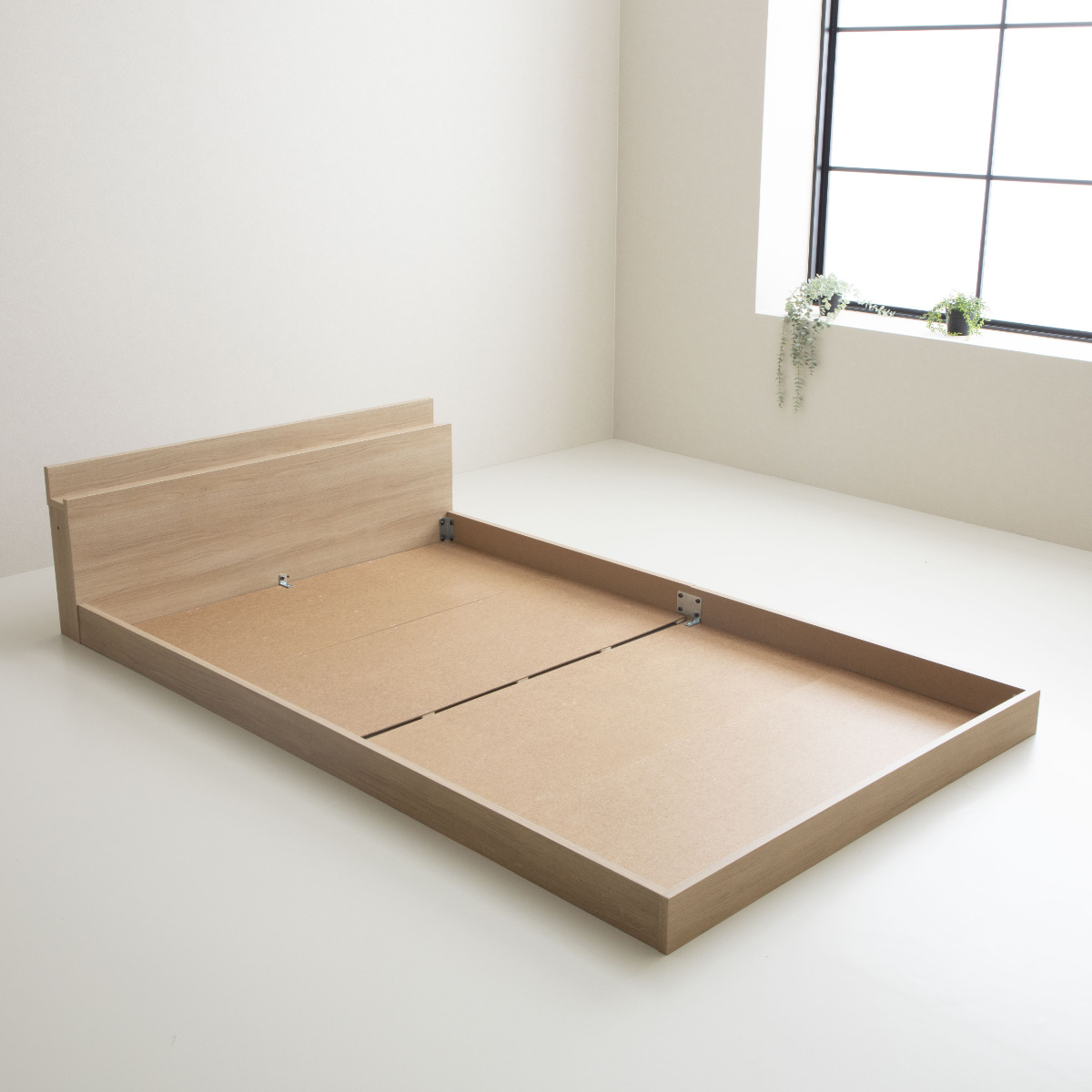 床に近い高さのローベッド設計で、お部屋に圧迫感を与えず開放的な空間を演出します。視線が低くなることで天井までの空間が広く感じられ、寝室をすっきりとした印象に整えます。