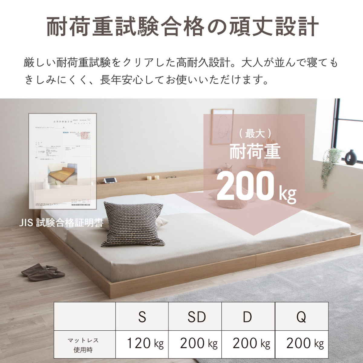 | 耐荷重 | マットレス使用時 200kg |
