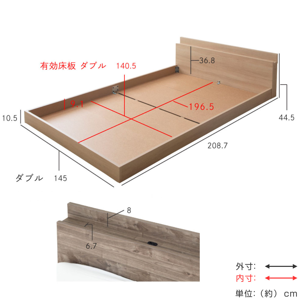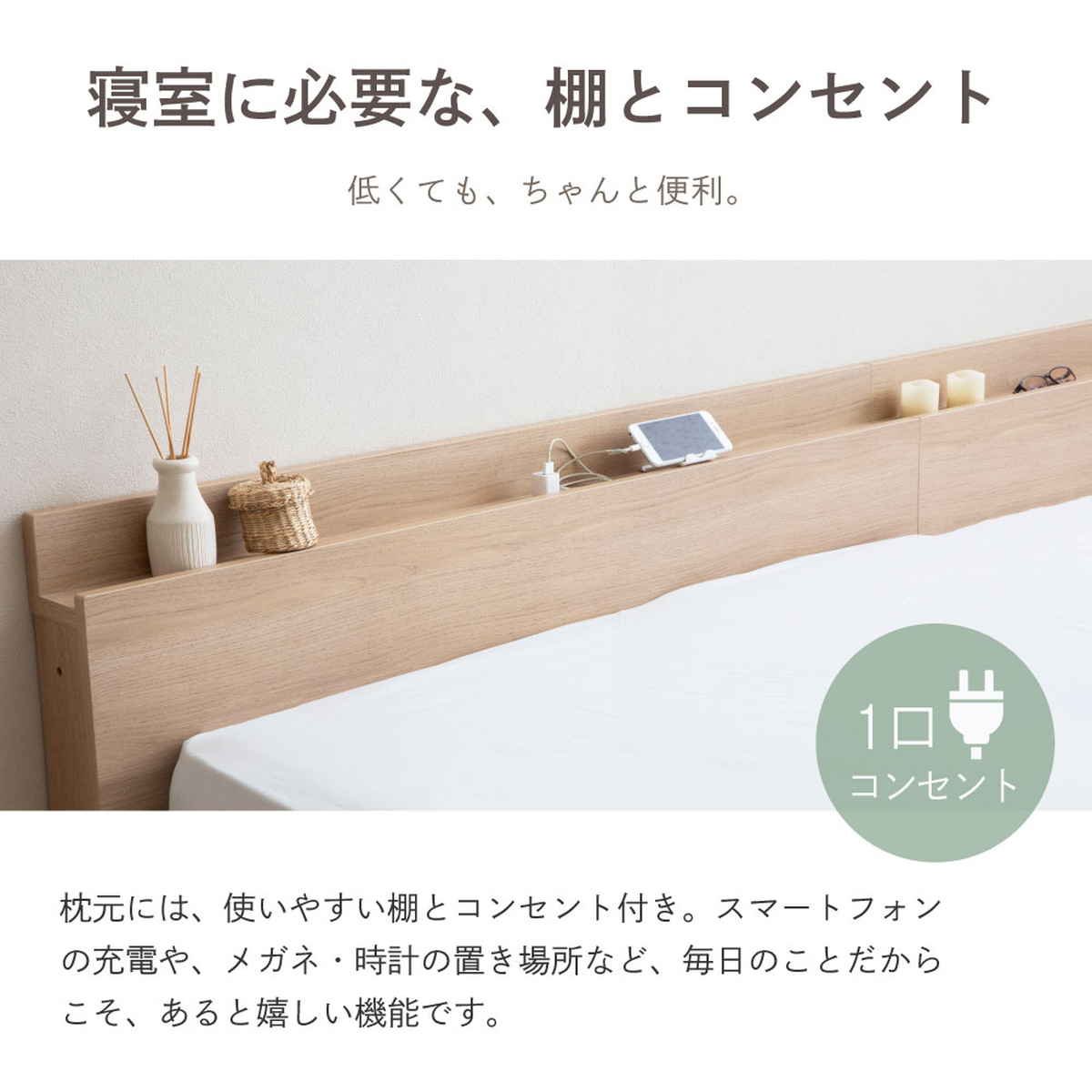 ヘッドボードにはコンセントが付いているため、スマートフォンの充電や照明などに便利です。ベッドで過ごす時間をより快適にしてくれる機能です。