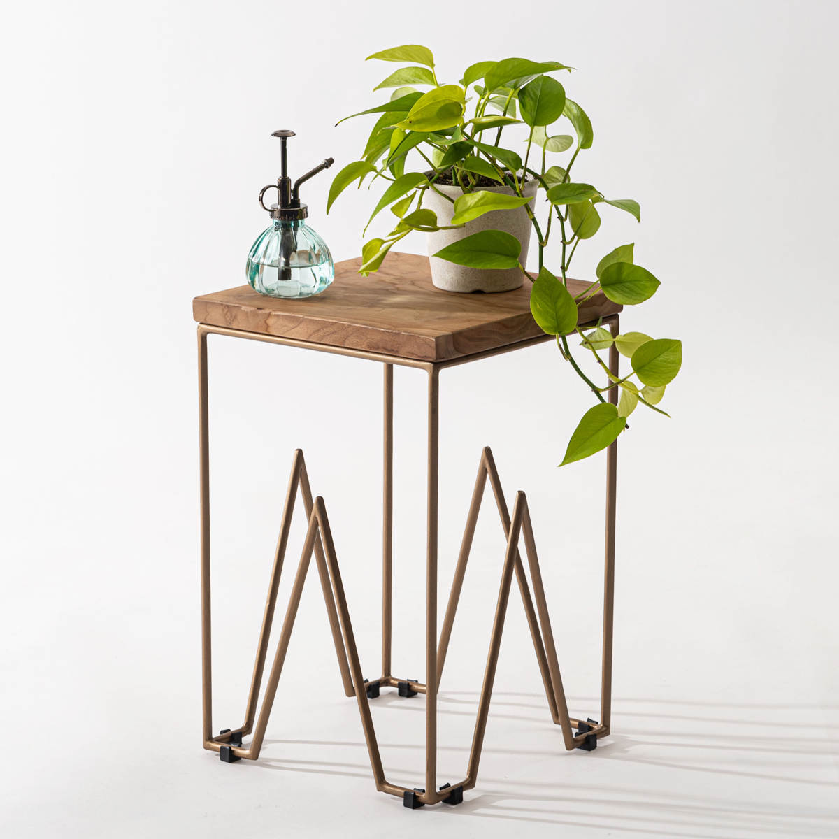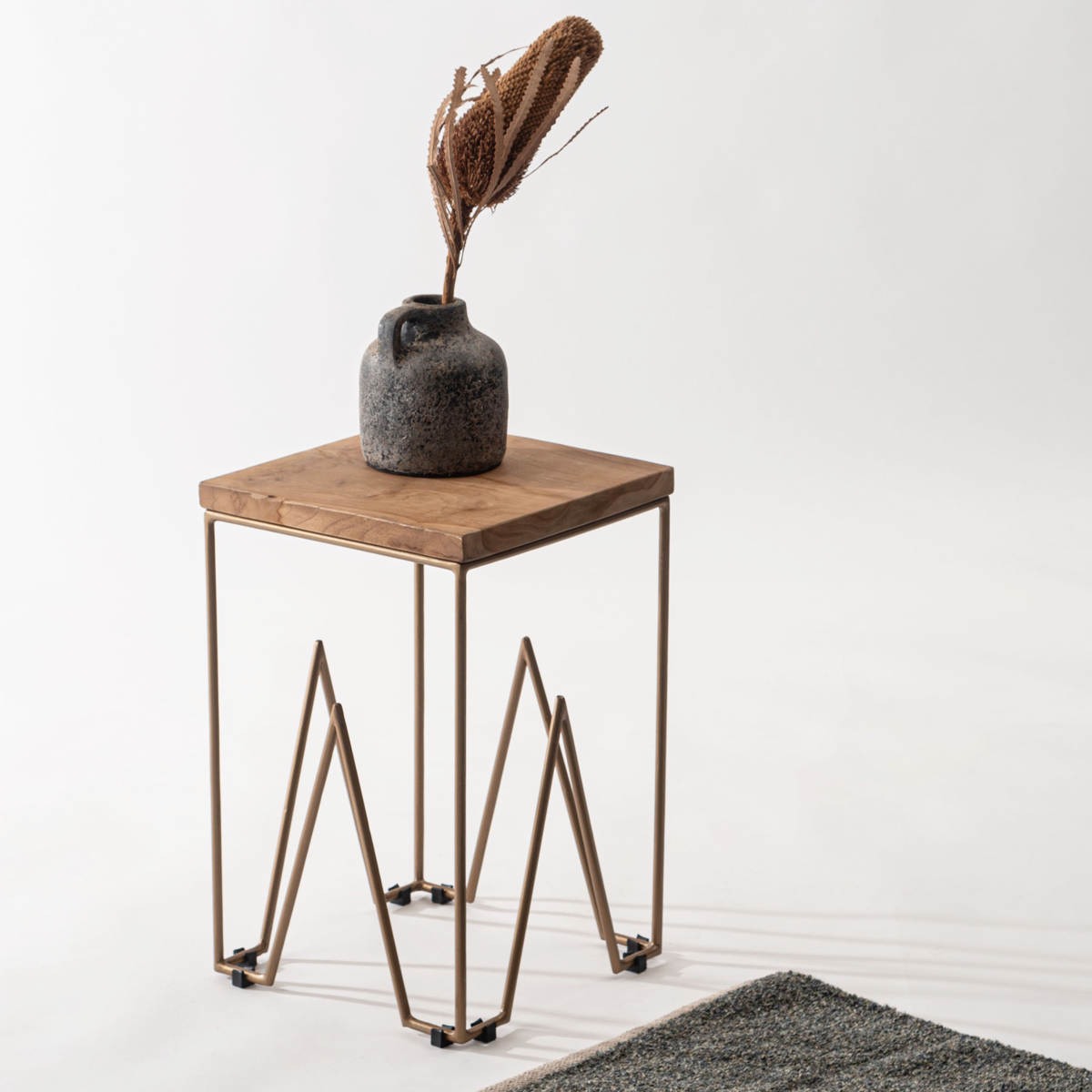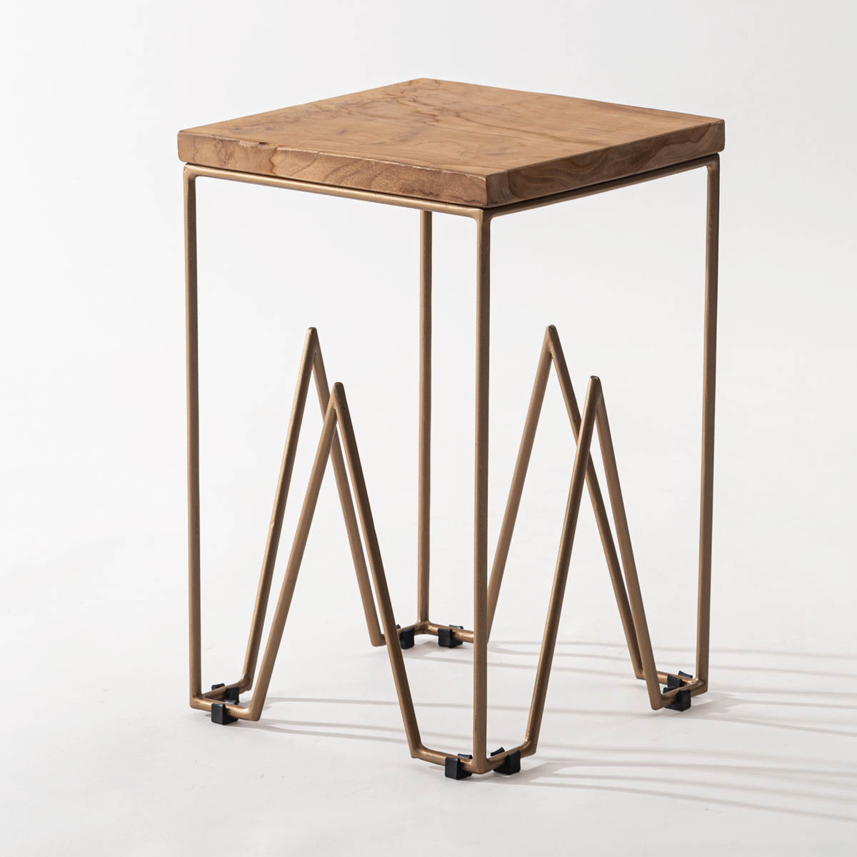 ●天然木チークとゴールドスチール脚を組み合わせたスツールです。
