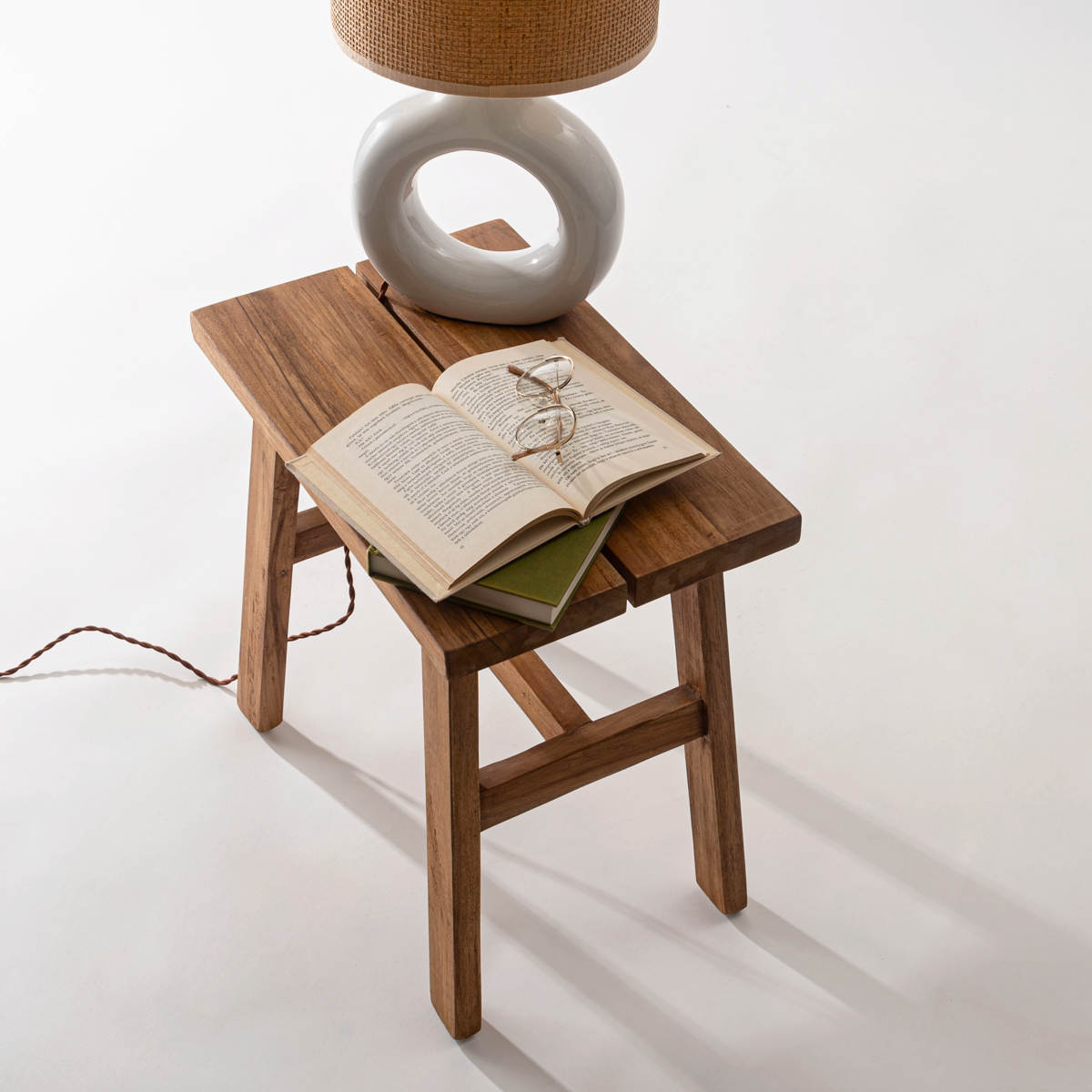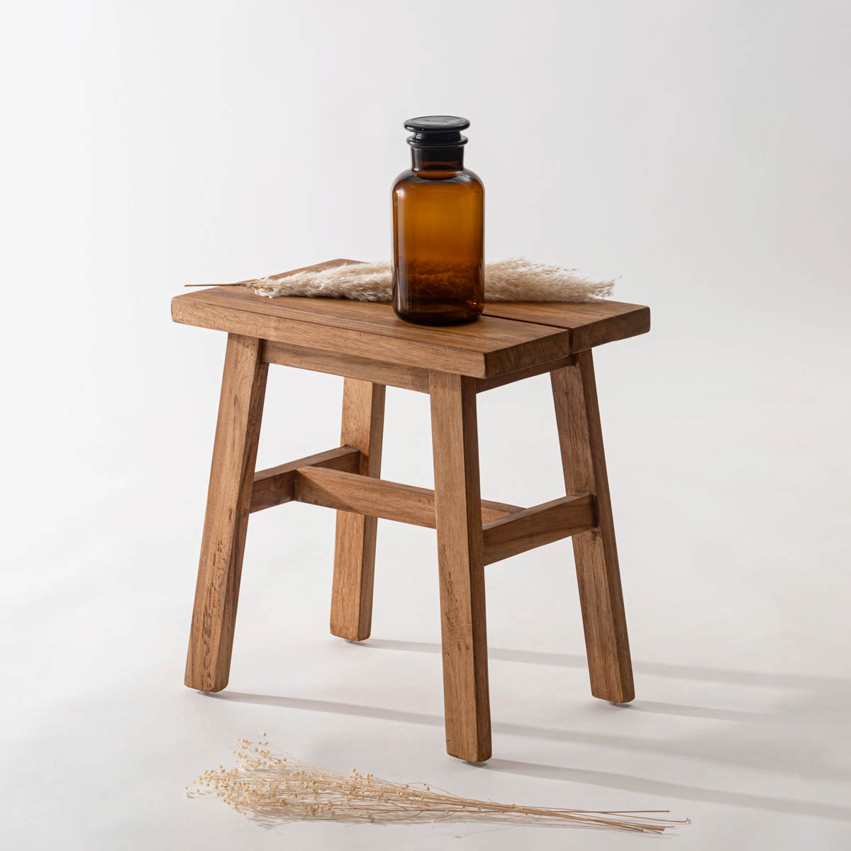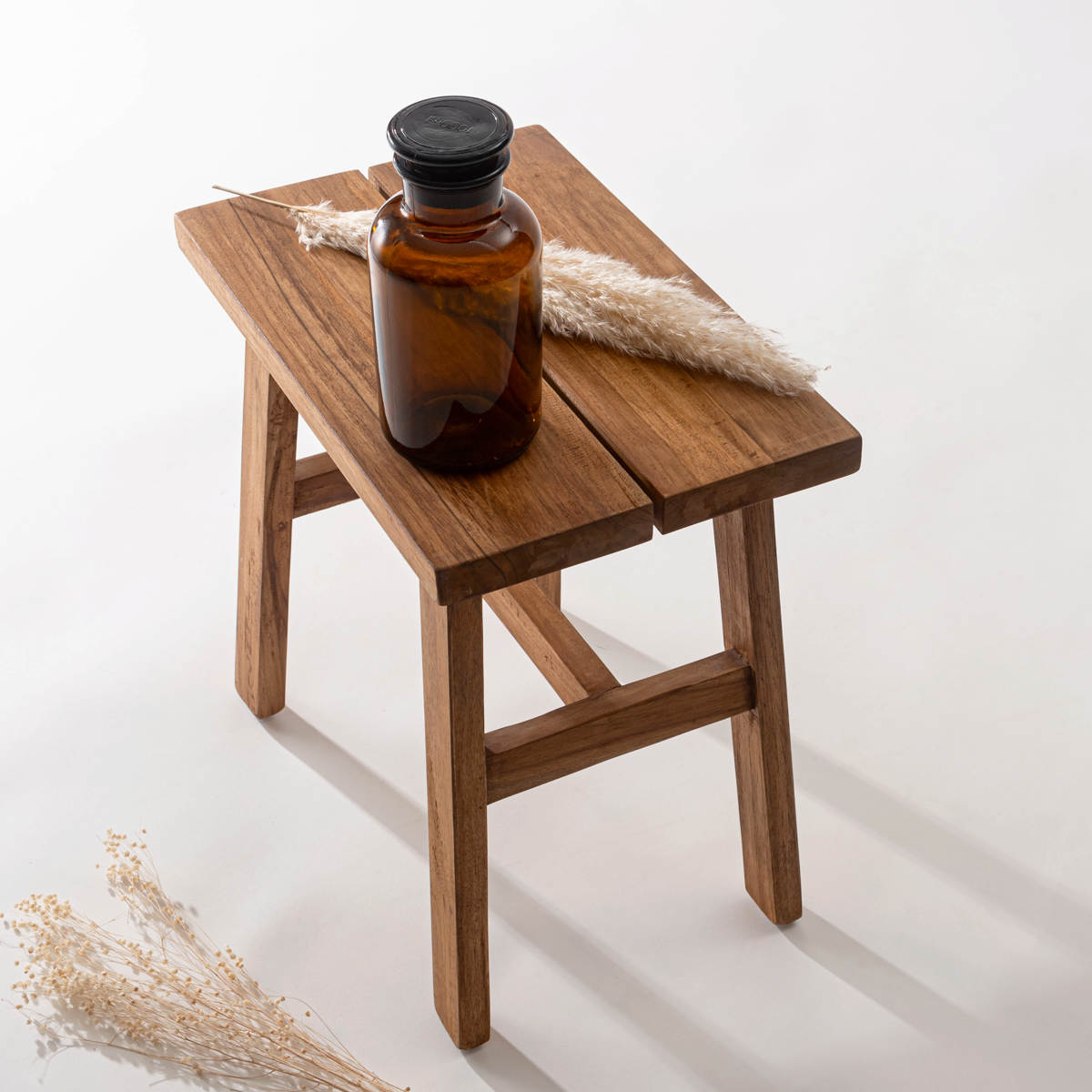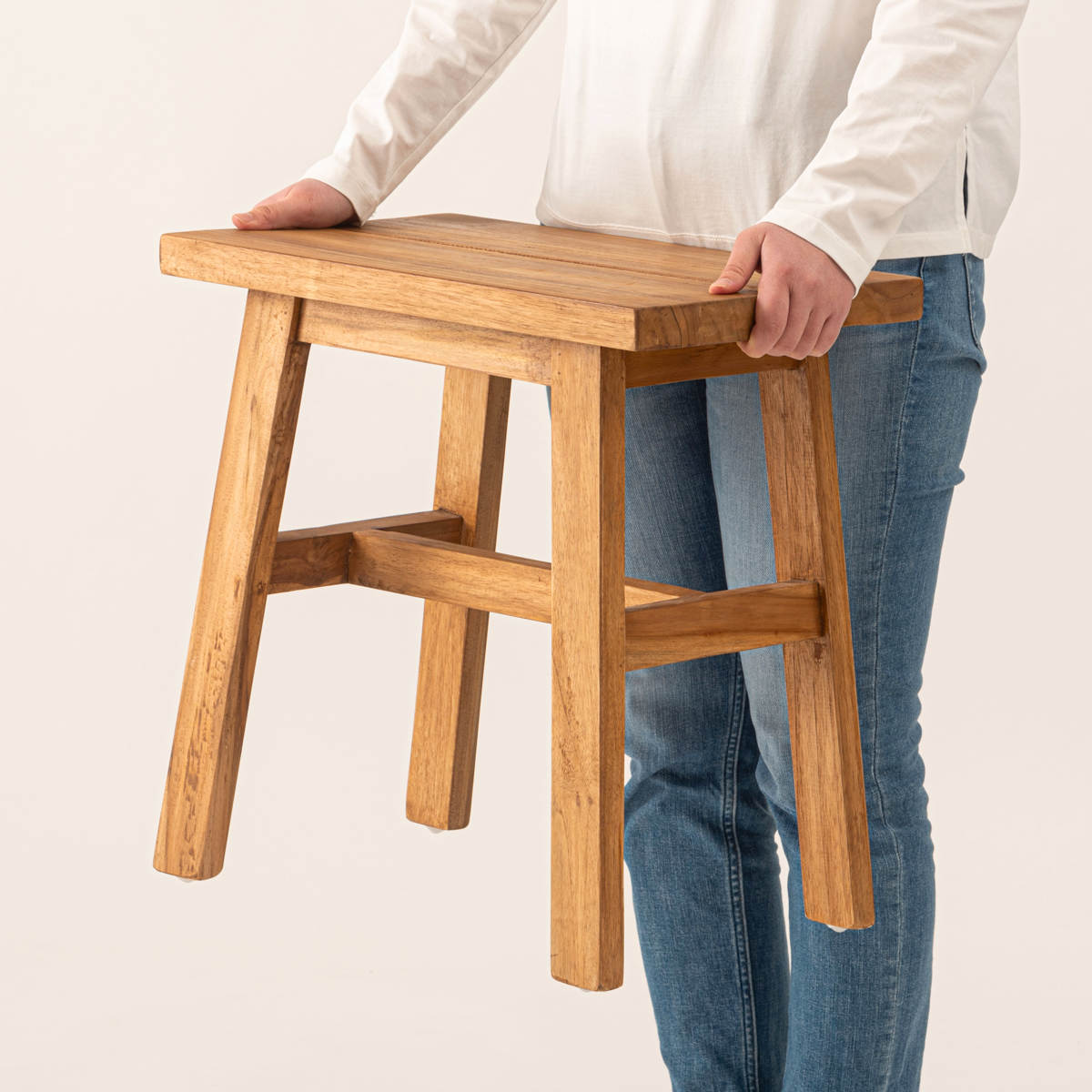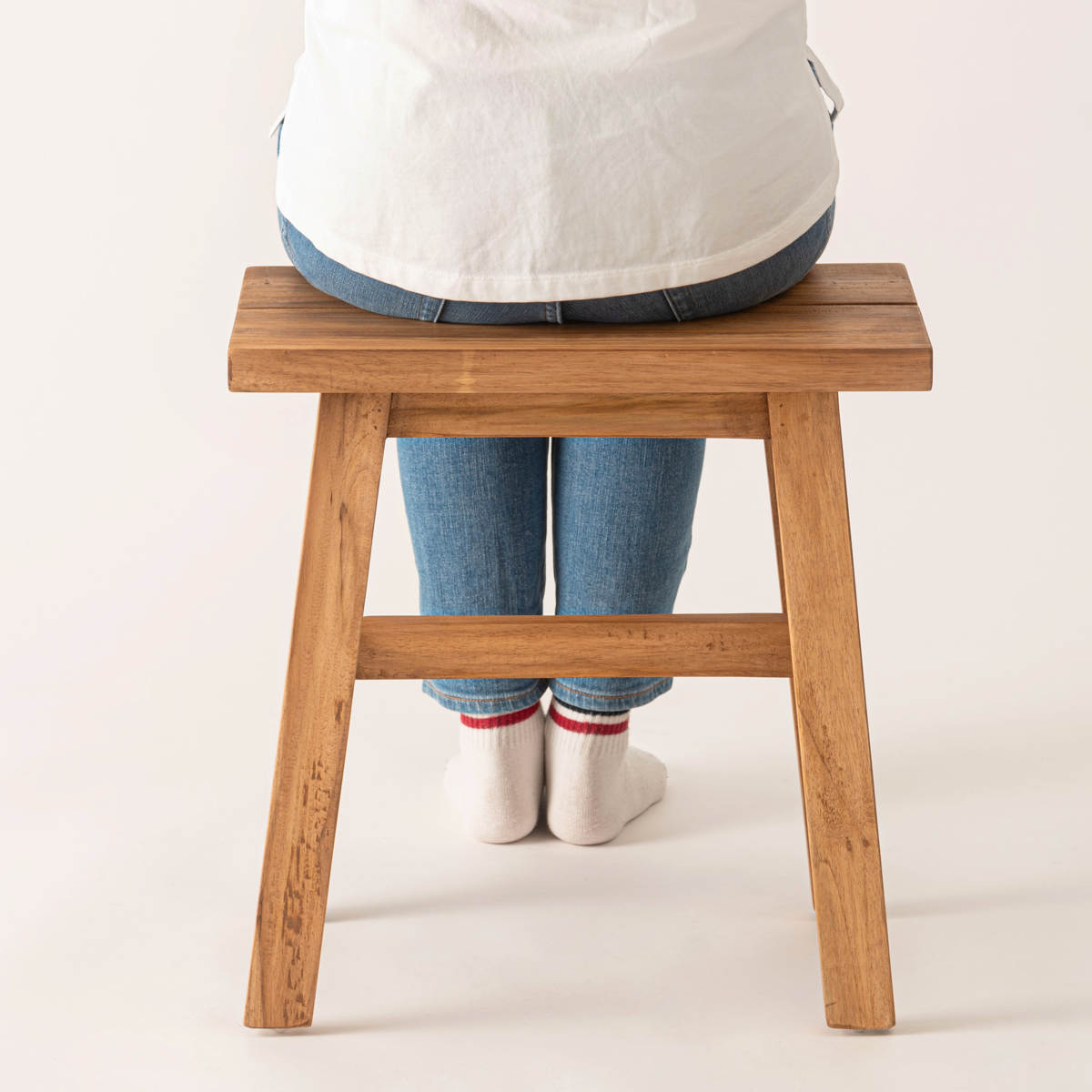 ●天然木チーク材を使用した、木目が美しい木製スツールです。