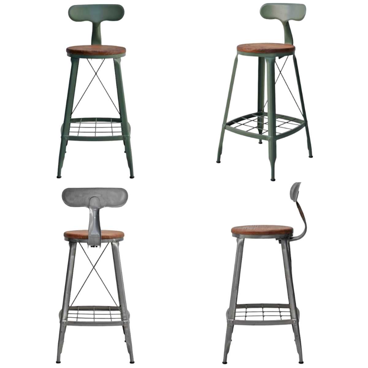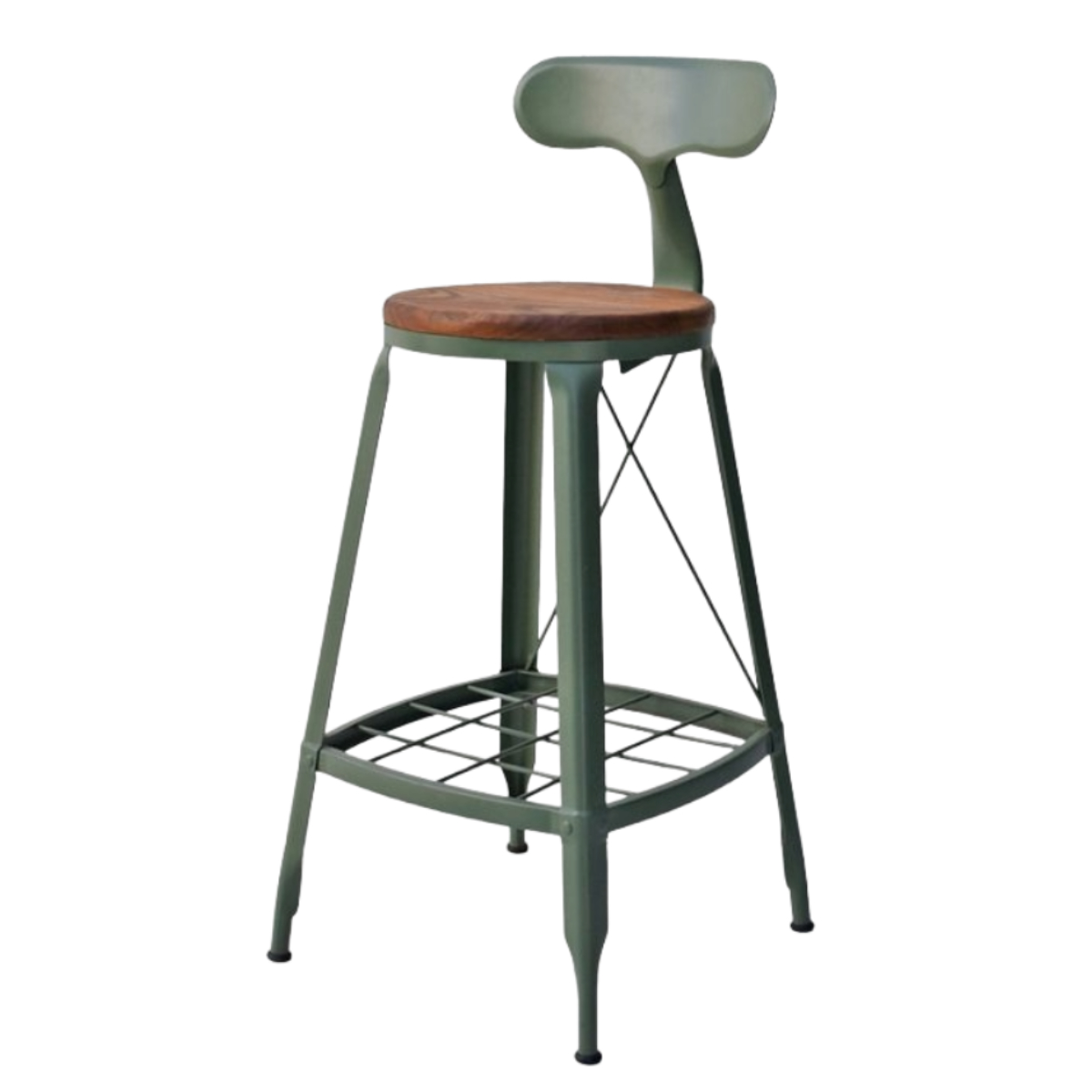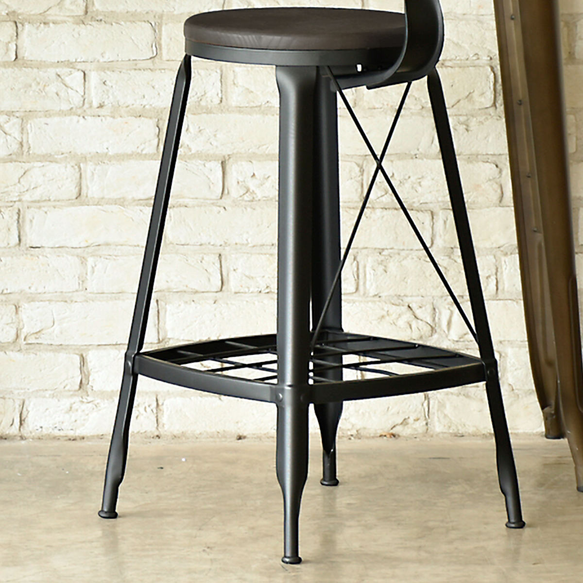 スチール脚にクロスバーを組み合わせたデザイン。抜け感があり圧迫感を抑えながら、雰囲気のある佇まいに。背面から見ても印象的で、空間のアクセントにもなります。