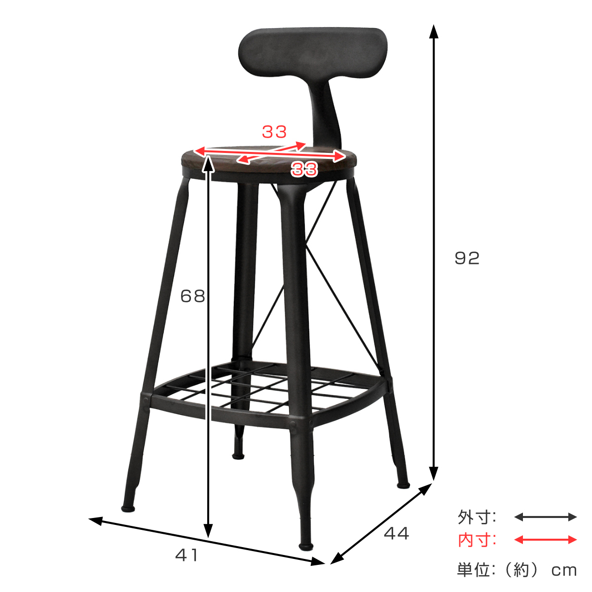 | サイズ | 約 幅41×奥行44×高さ92(cm) 座面高:約 68(cm) |