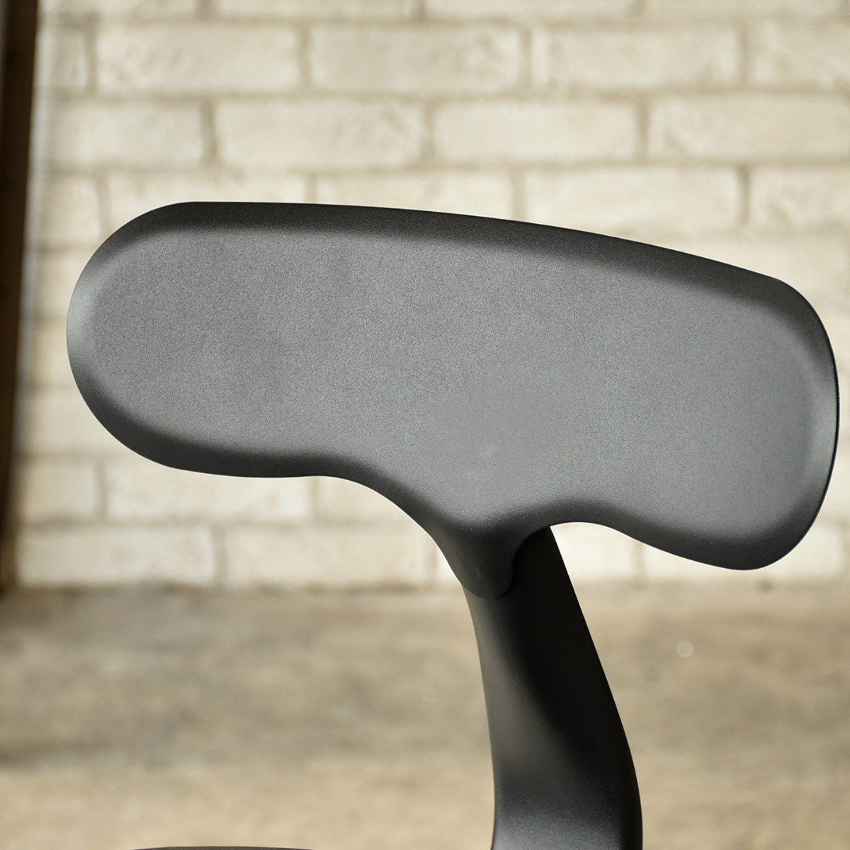 カーブを描くスチール製の背もたれ