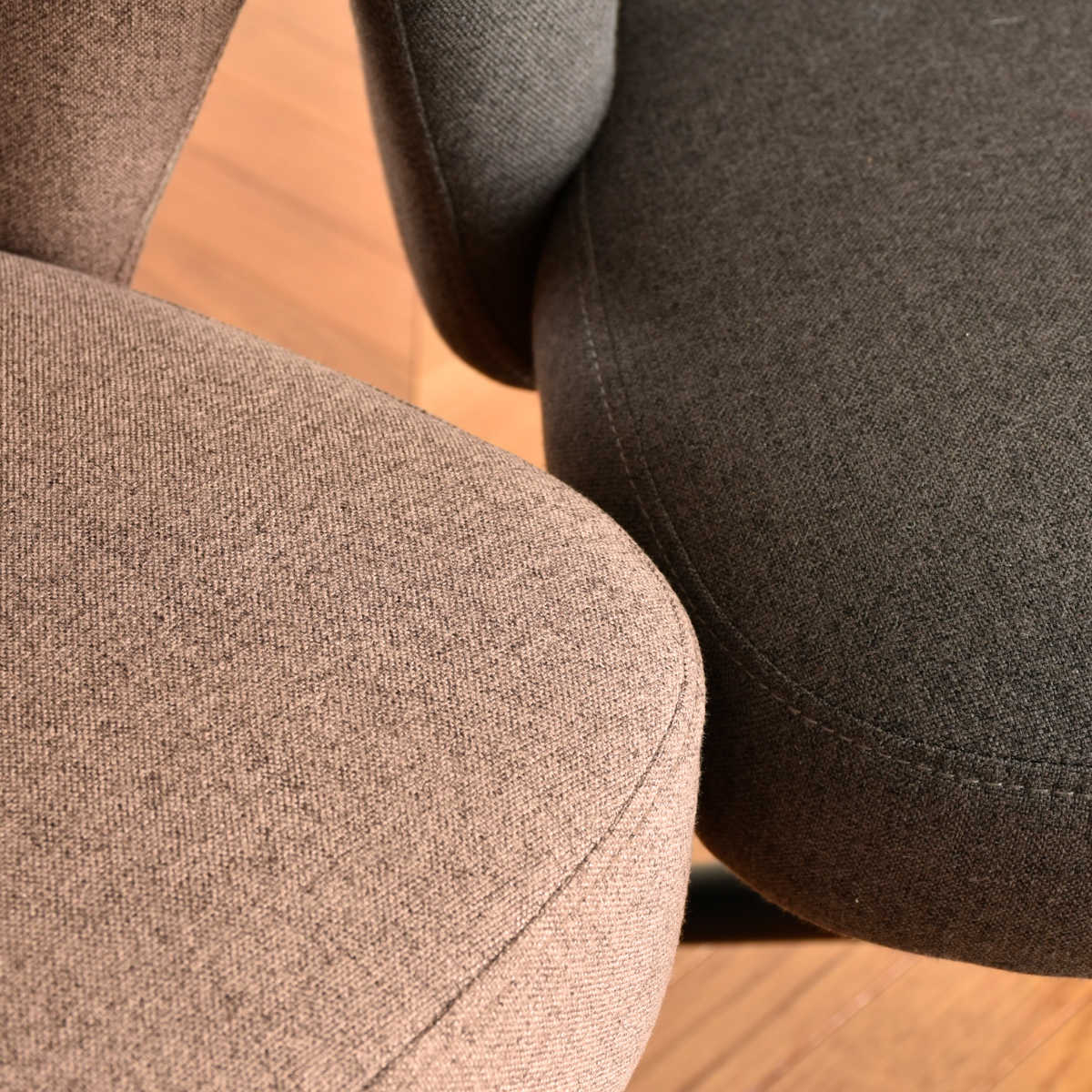 張地にはやさしい風合いのファブリックを使用。ブラウンとグレーの落ち着いたカラーが空間になじみやすく、インテリアにも取り入れやすい仕上がりです。