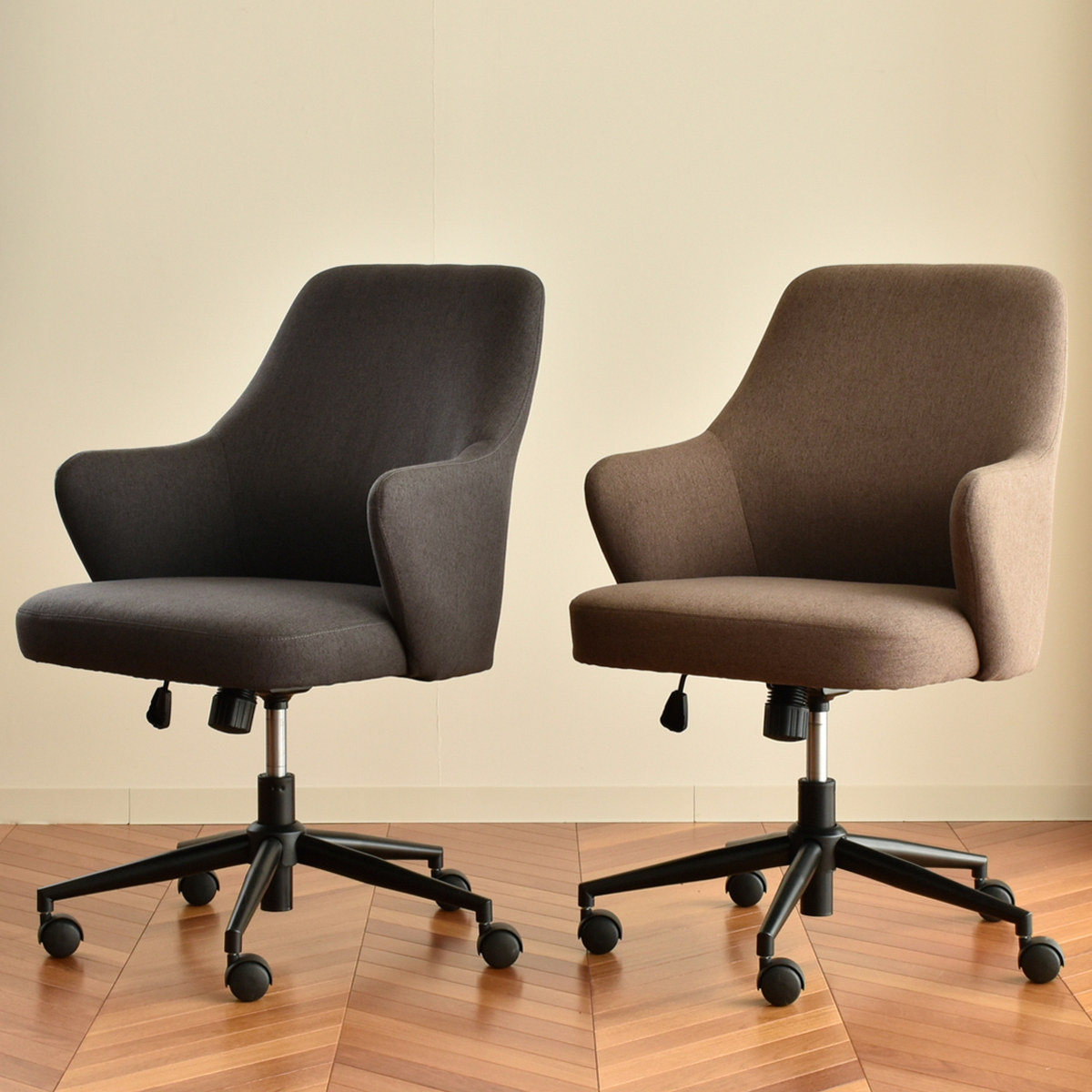 落ち着いたカラーとシンプルなフォルムで、ワークスペースを心地よく整えるチェア。統一感のあるオフィスづくりにもおすすめです。