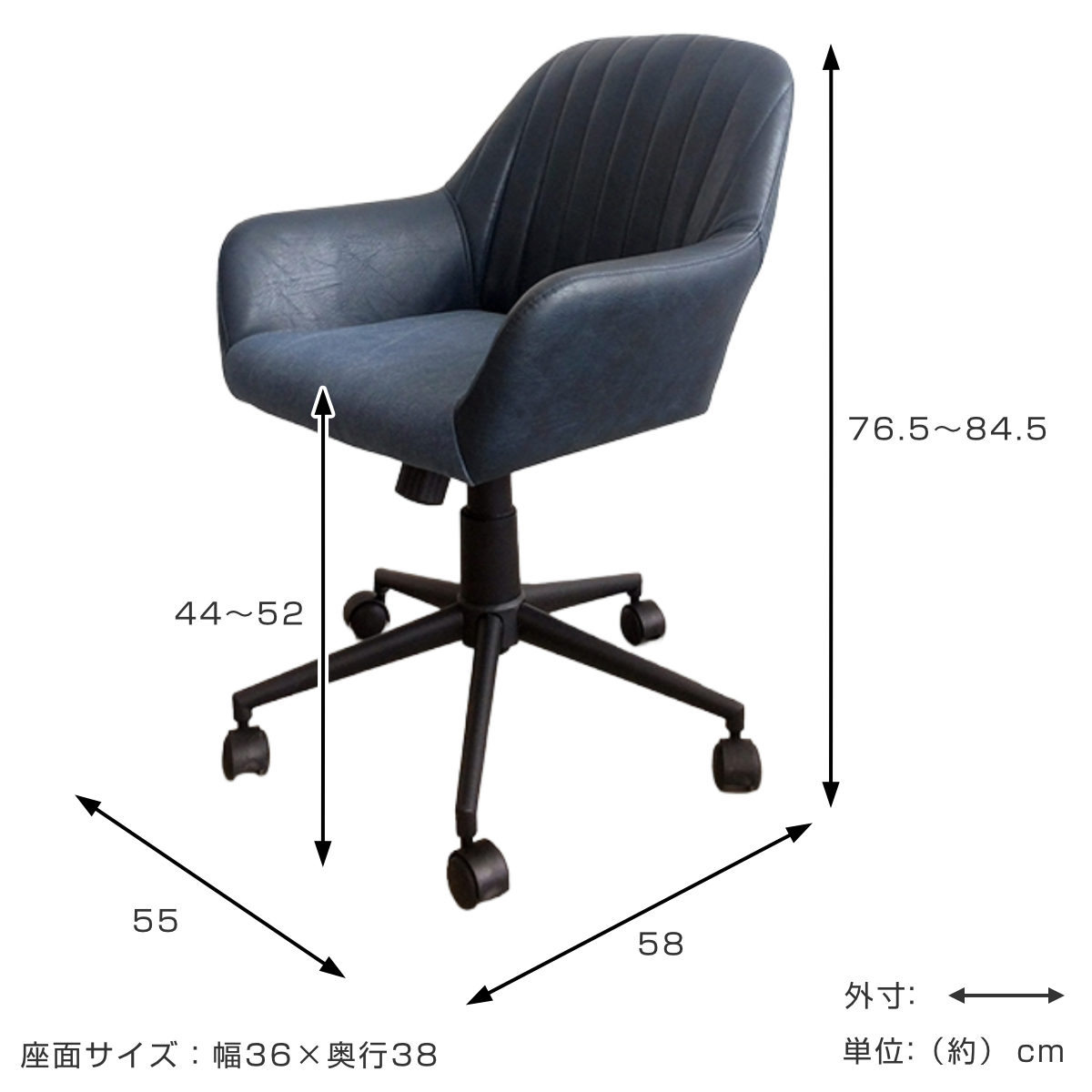 - 約幅55×奥行58×高さ76.5~84.5cm