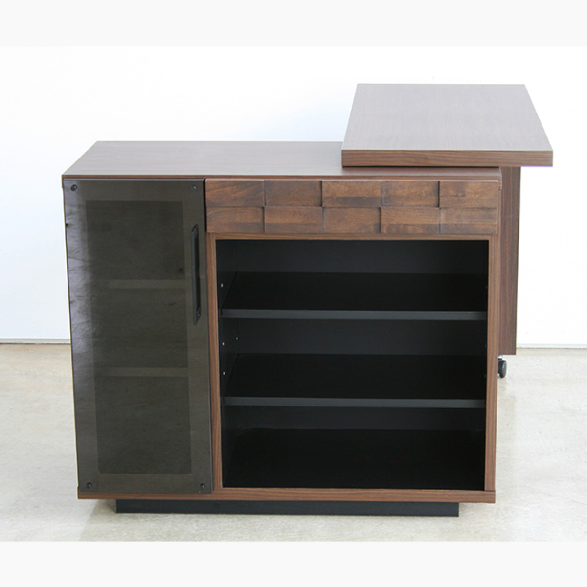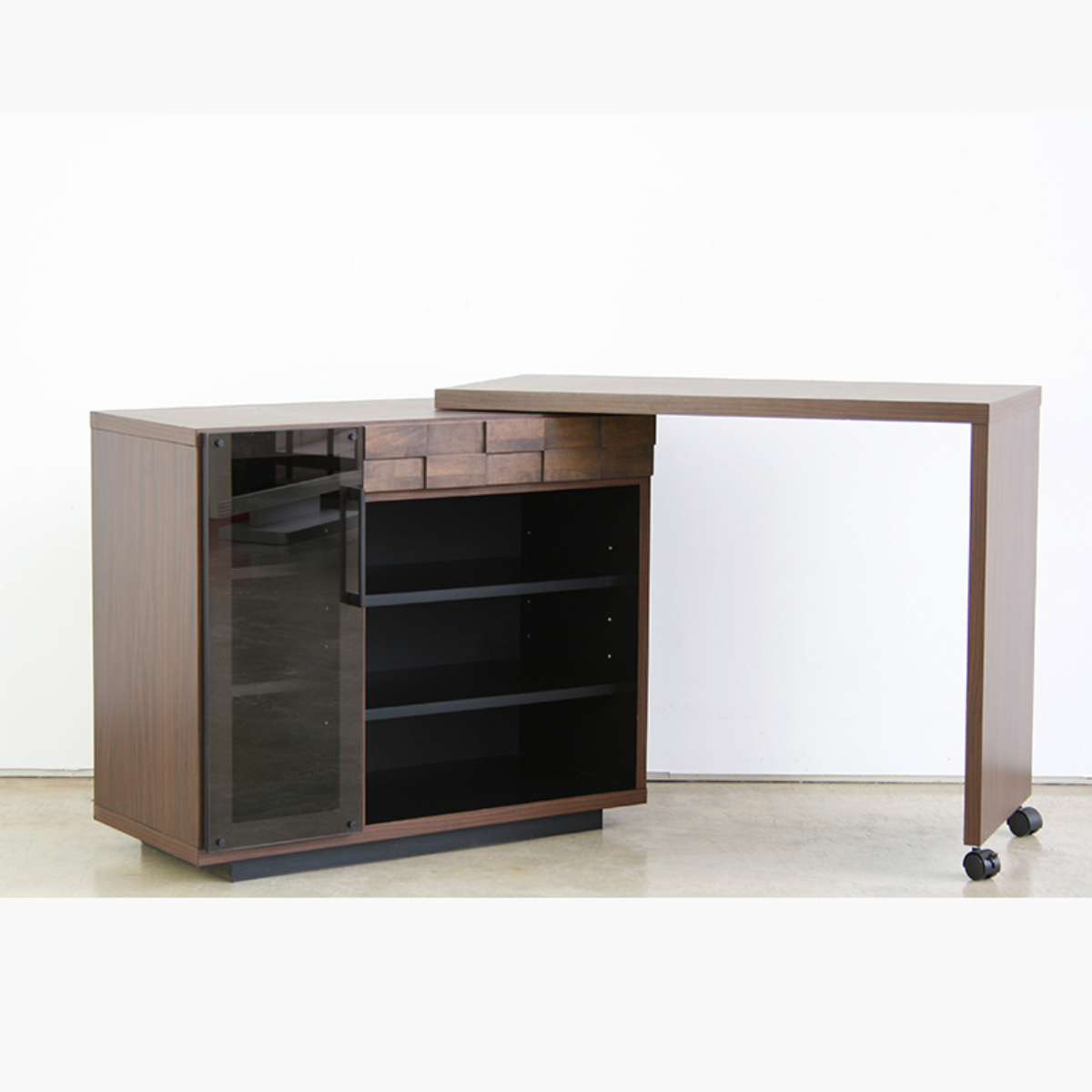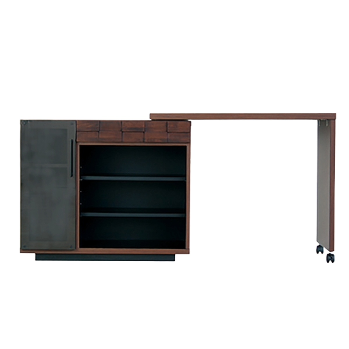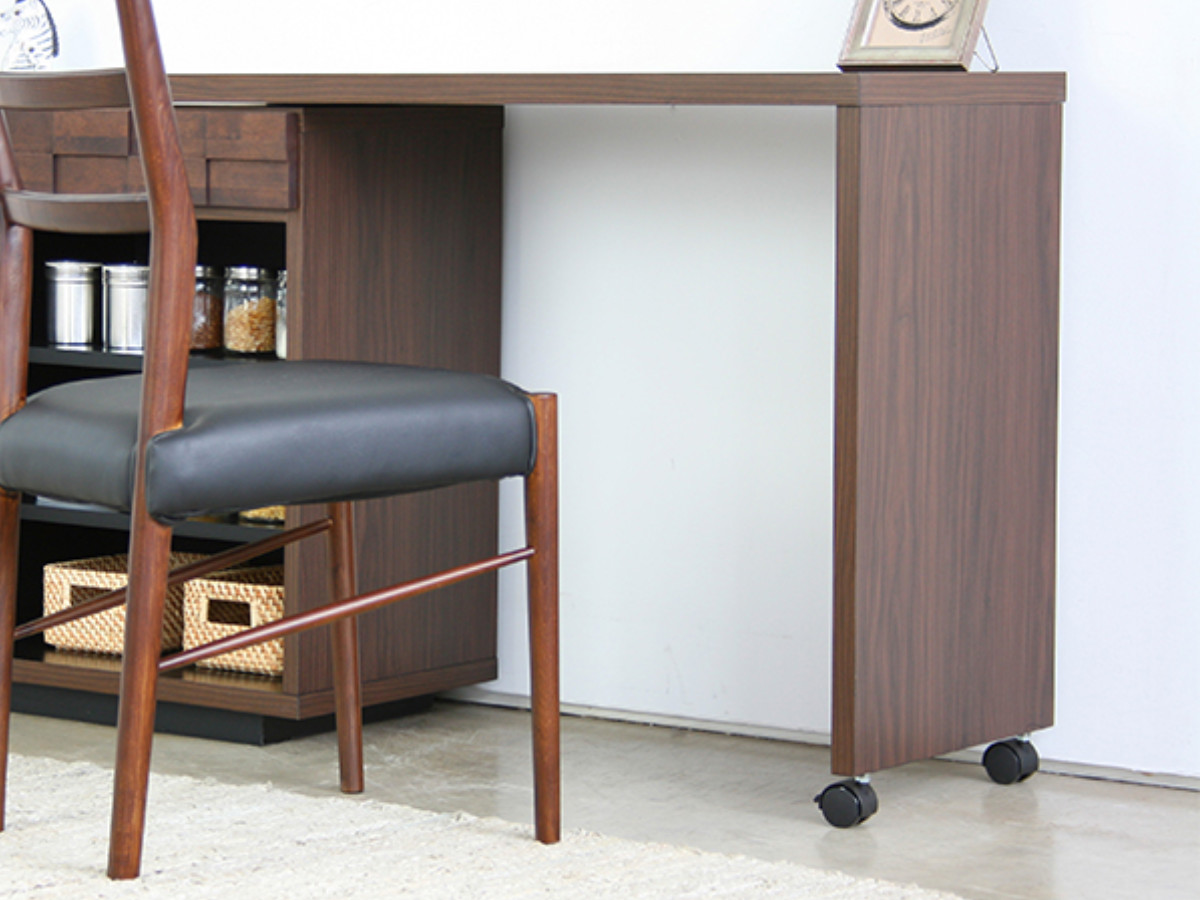 | 材質 | 天板:強化紙×強化ガラス(ダークグレー) 本体:プリント 前板:アルダー無垢材 脚:キャスター(天板側のみ) |