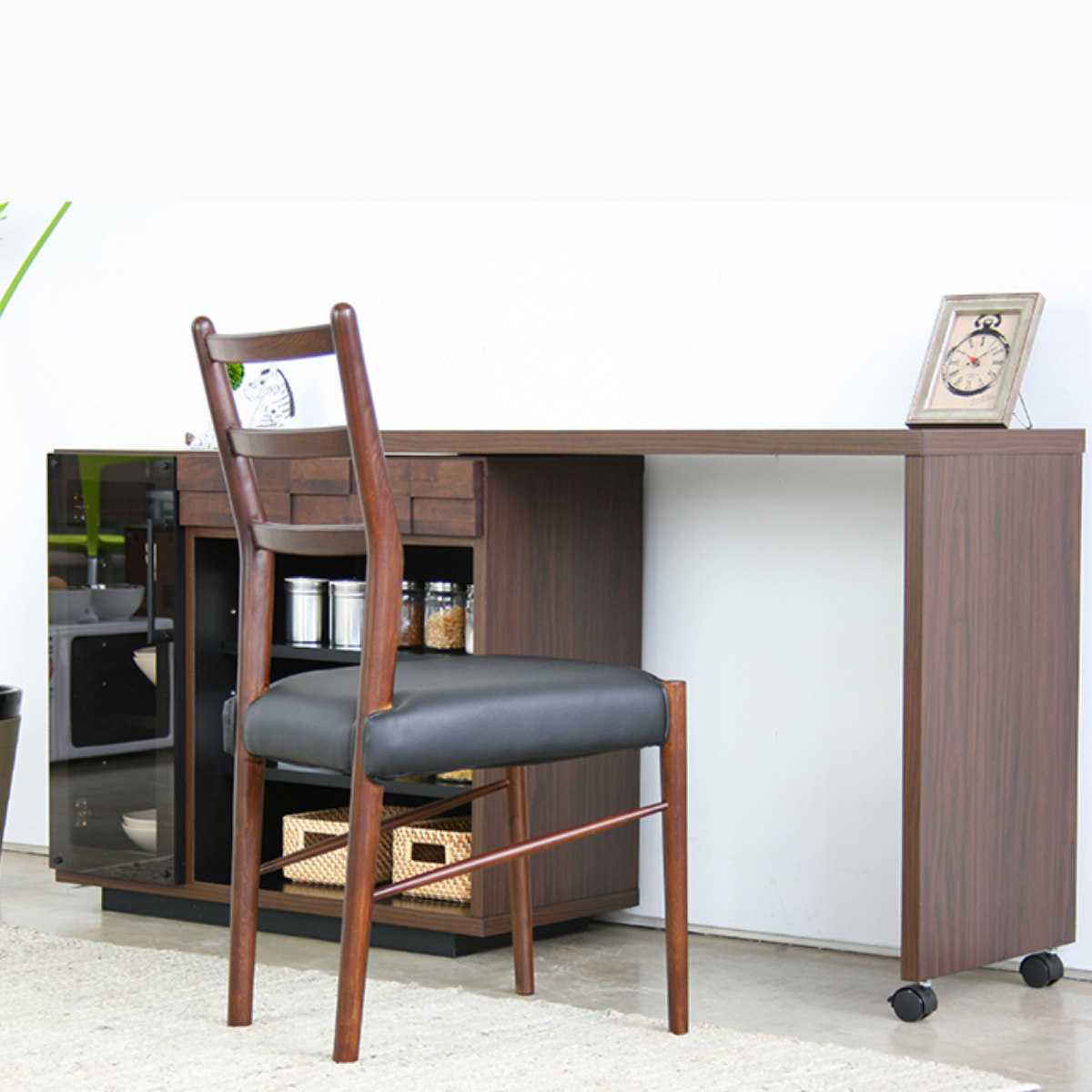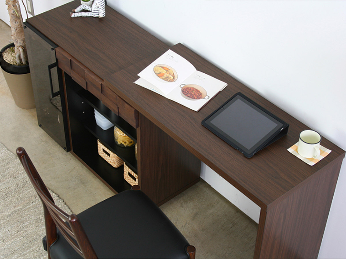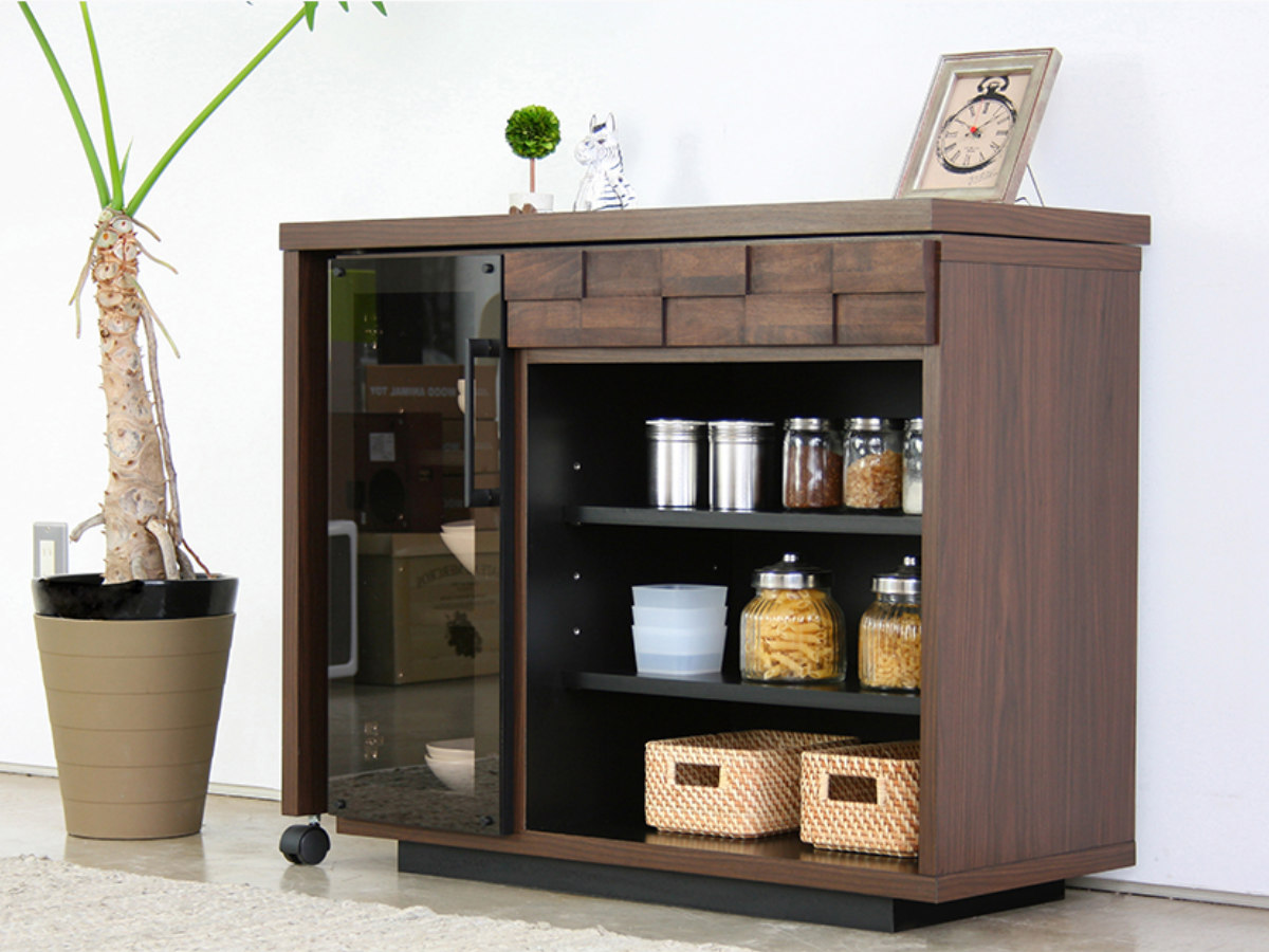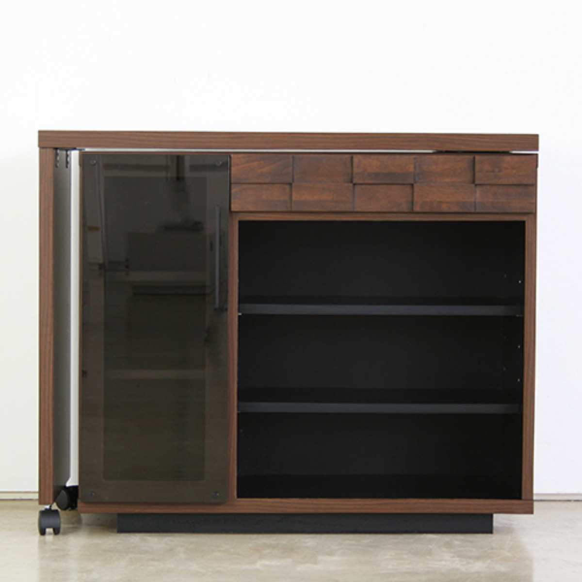 | 材質 | 天板:強化紙×強化ガラス(ダークグレー) 本体:プリント 前板:アルダー無垢材 脚:キャスター(天板側のみ) |