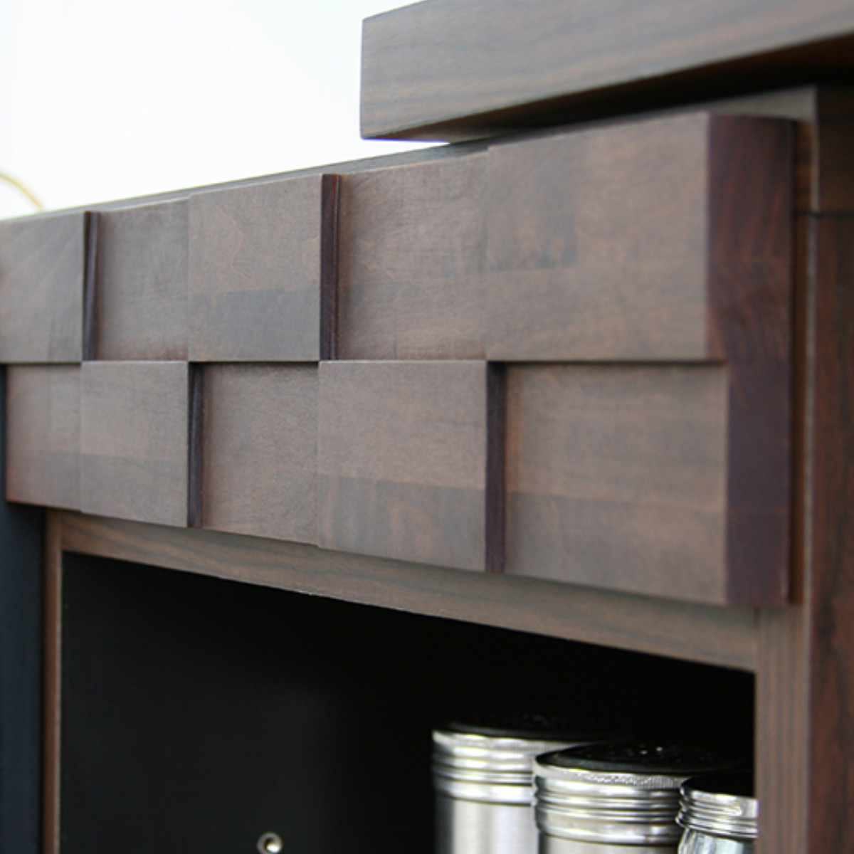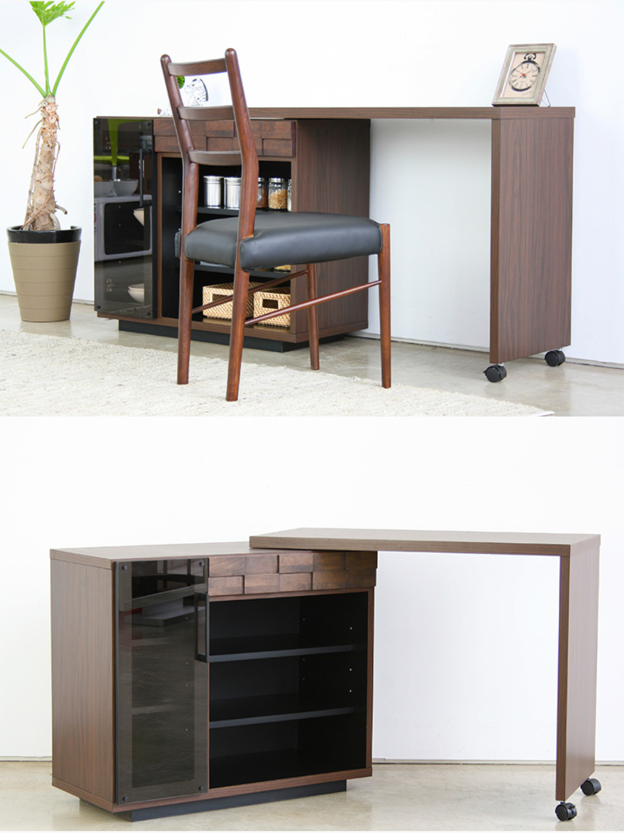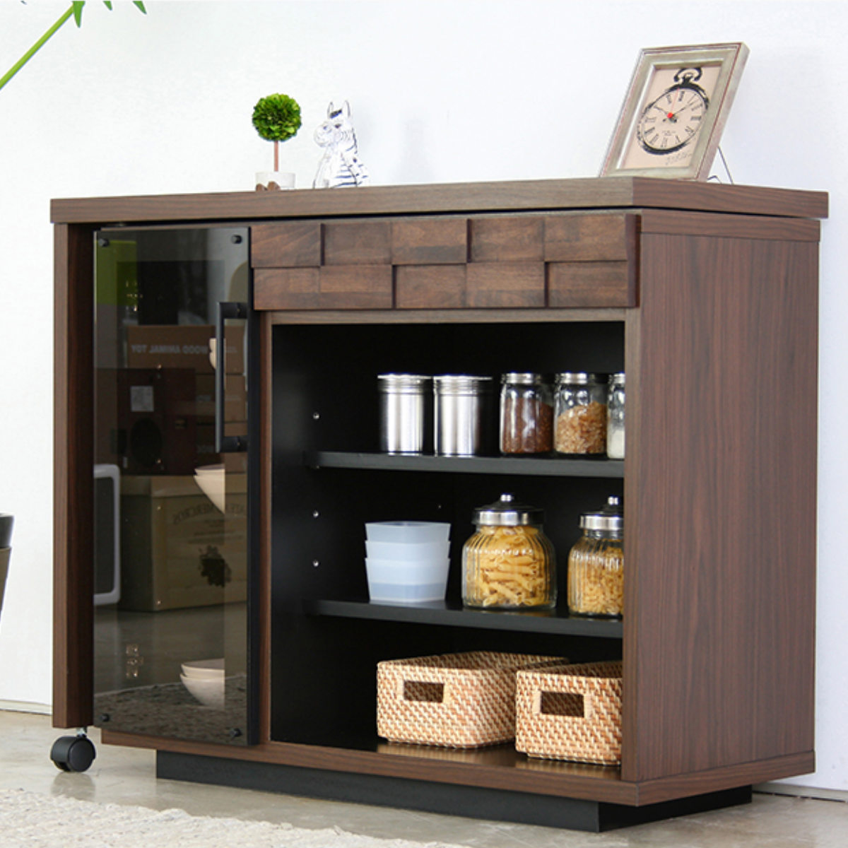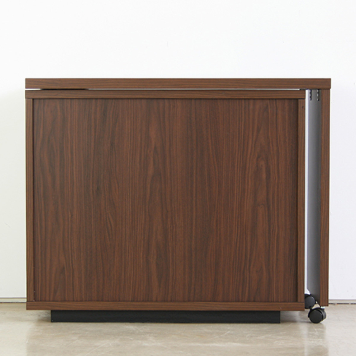 | 材質 | 天板:強化紙×強化ガラス(ダークグレー) 本体:プリント 前板:アルダー無垢材 脚:キャスター(天板側のみ) |